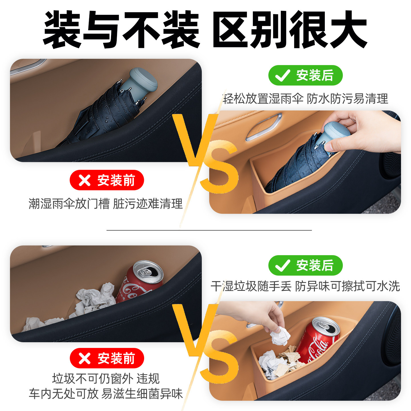 适用于26款 焕新极氪001车门槽雨伞垃圾桶收纳盒硅胶防水储物盒配