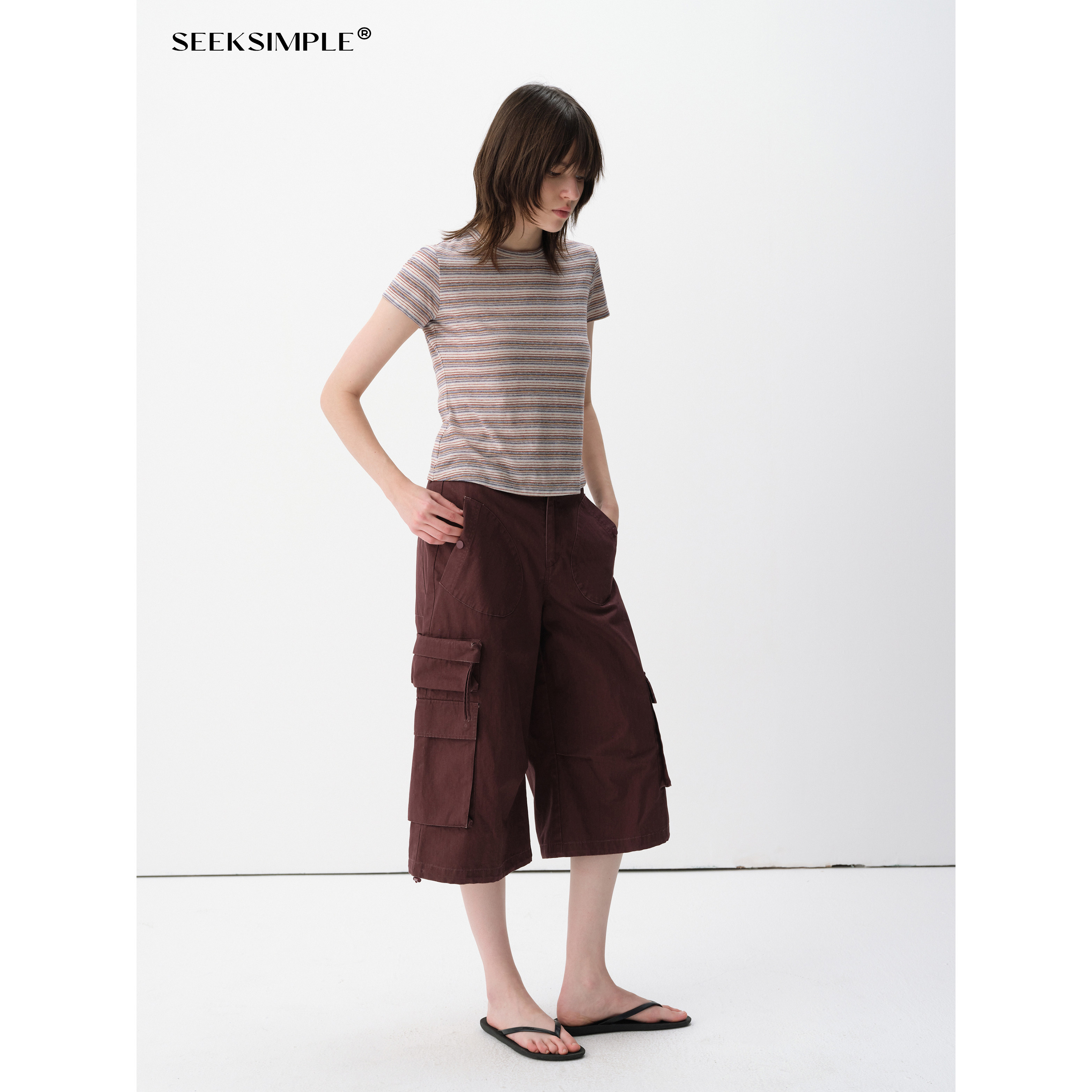 阔腿7分休闲裤 SEEKSIMPLE 中低腰工装