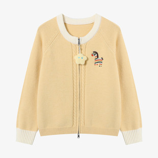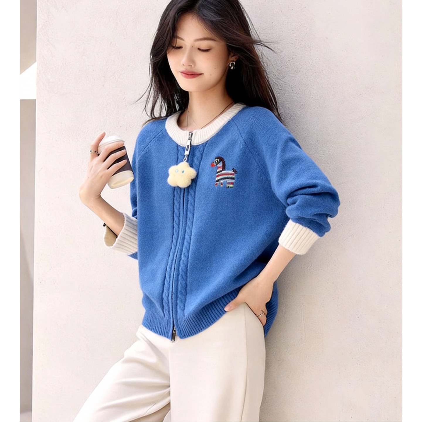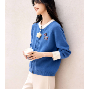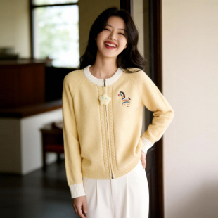 女春新款 百家好撞色小马提花针织开衫 双拉链毛衣外套 House Basic