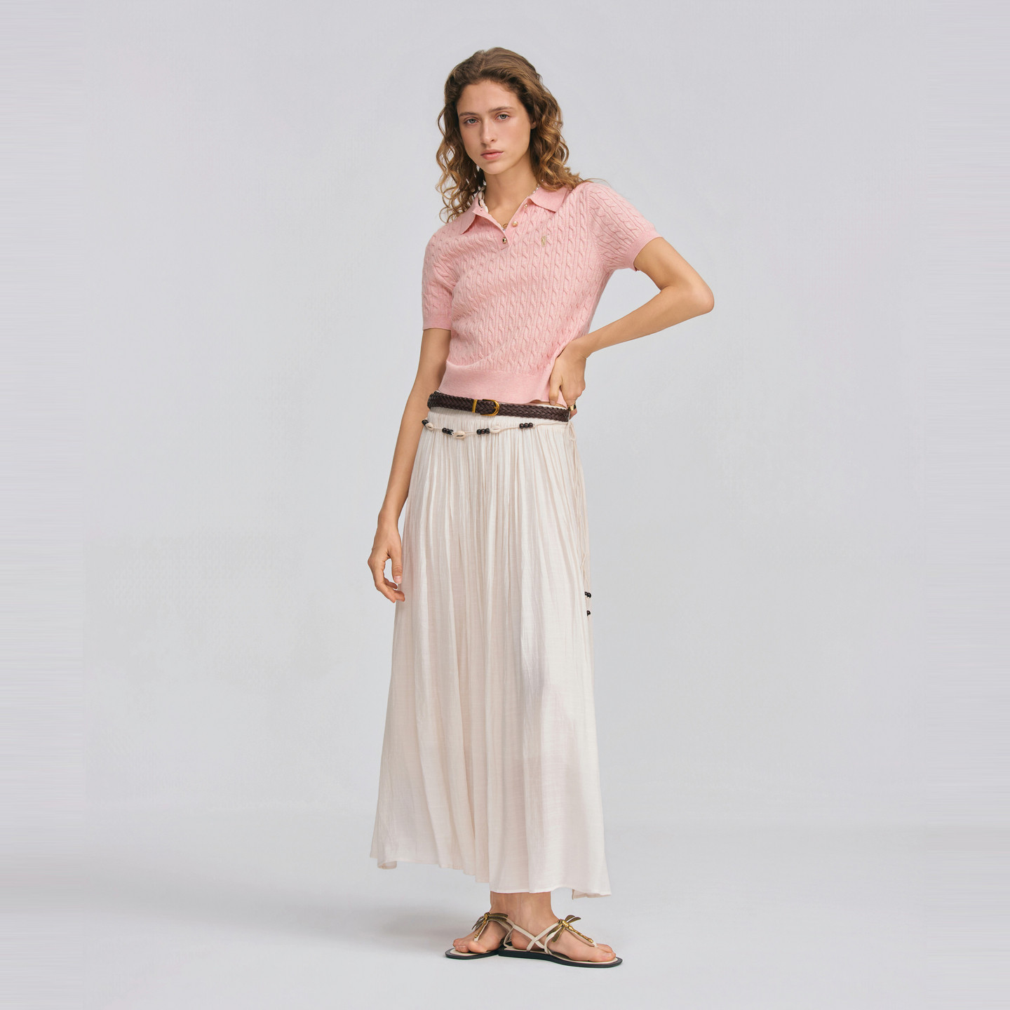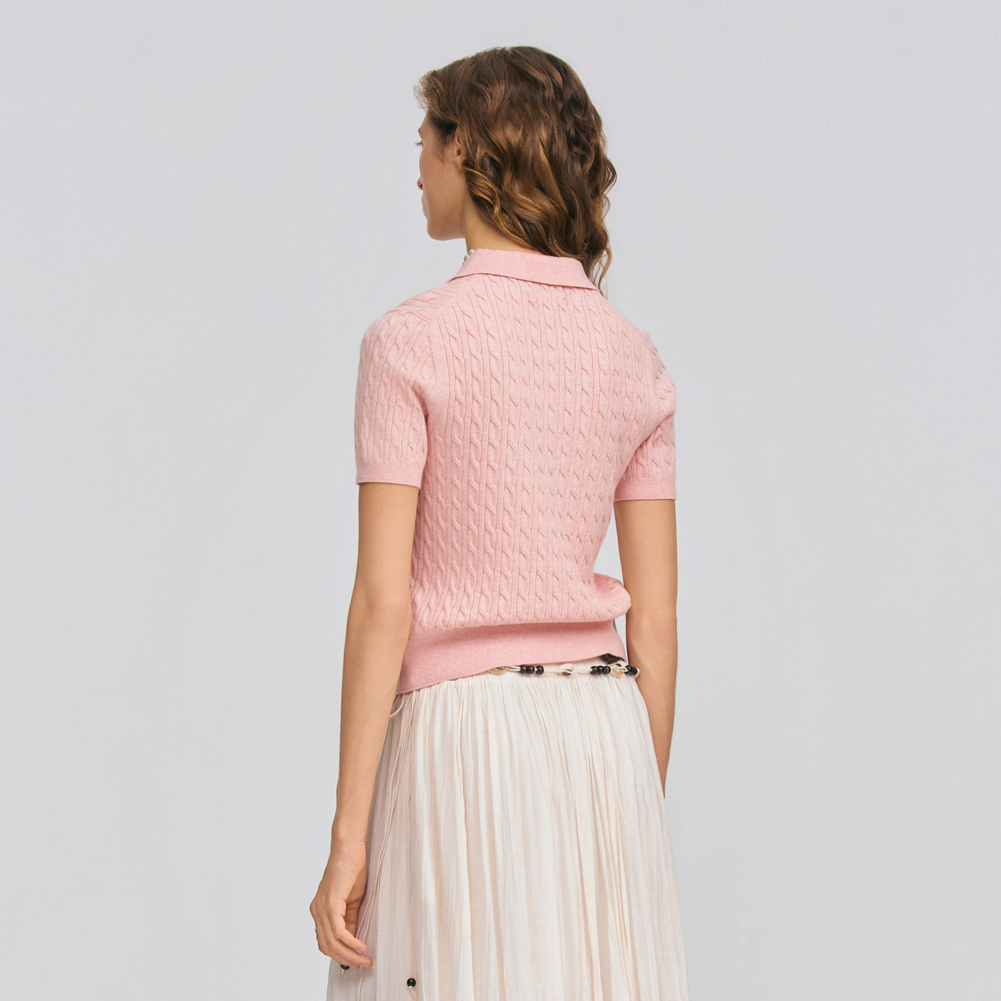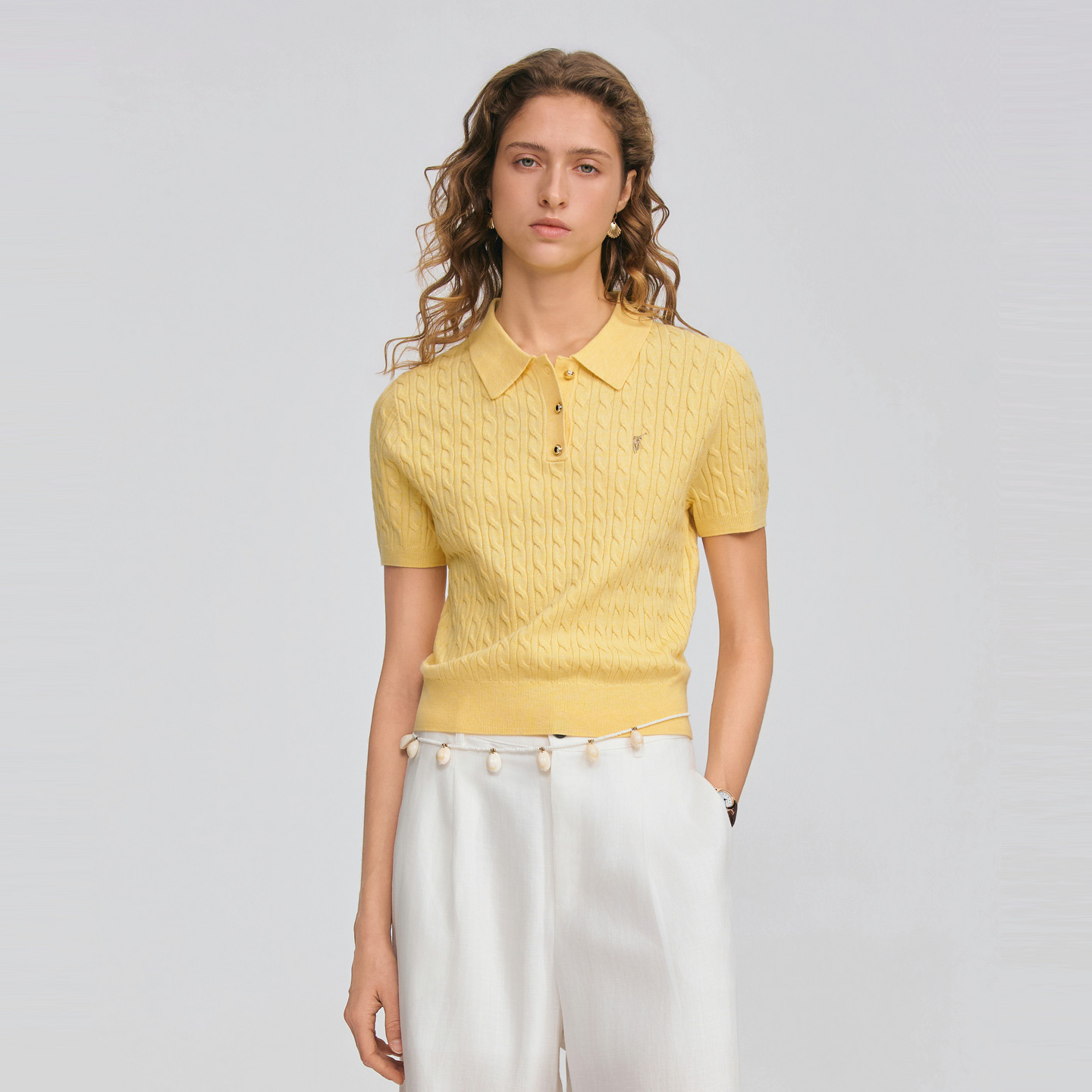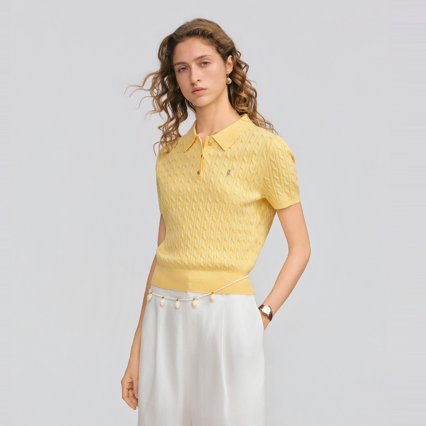 翻领绞花休闲百搭T恤针织衫 2026春夏新款 针织衫 POLOWALK女士短袖