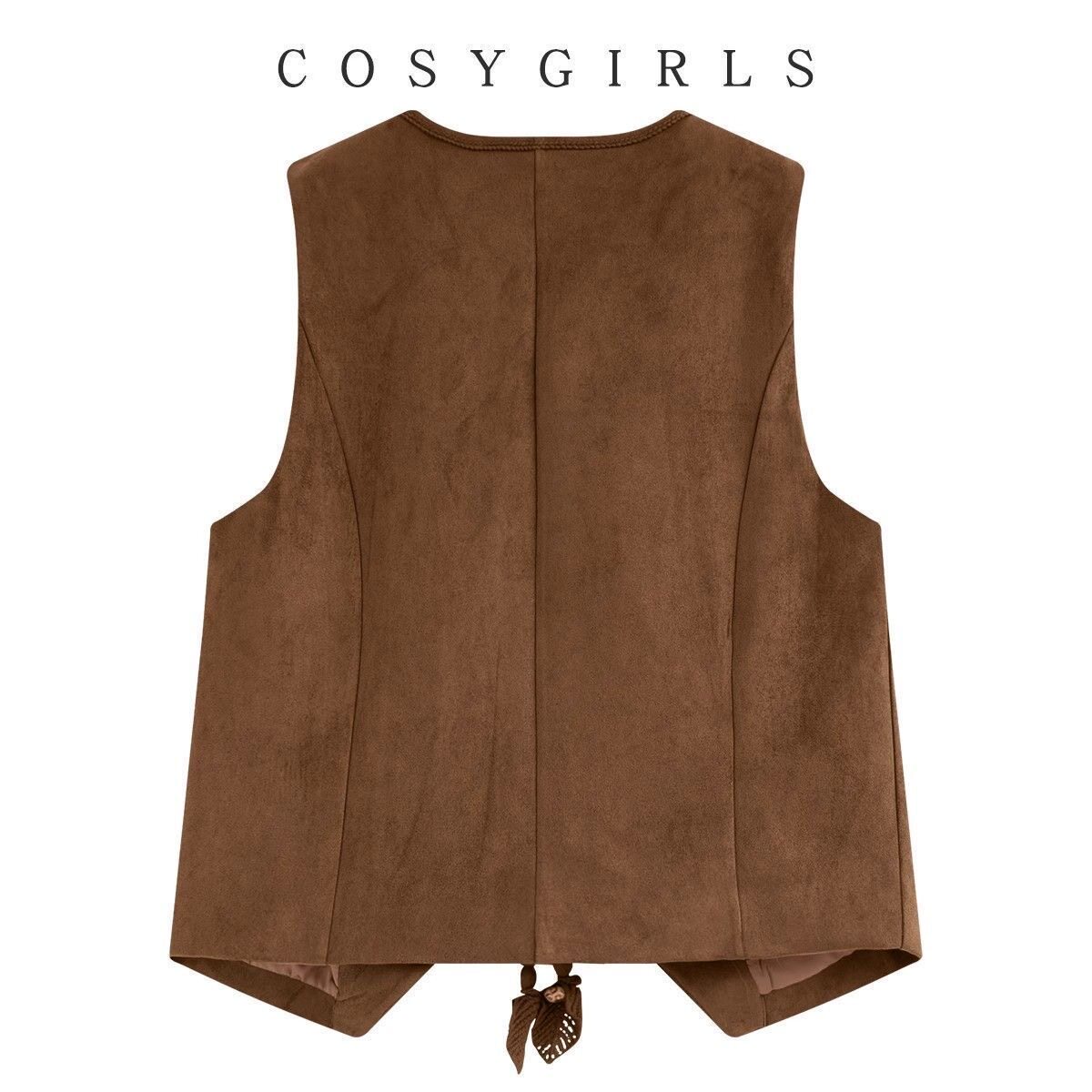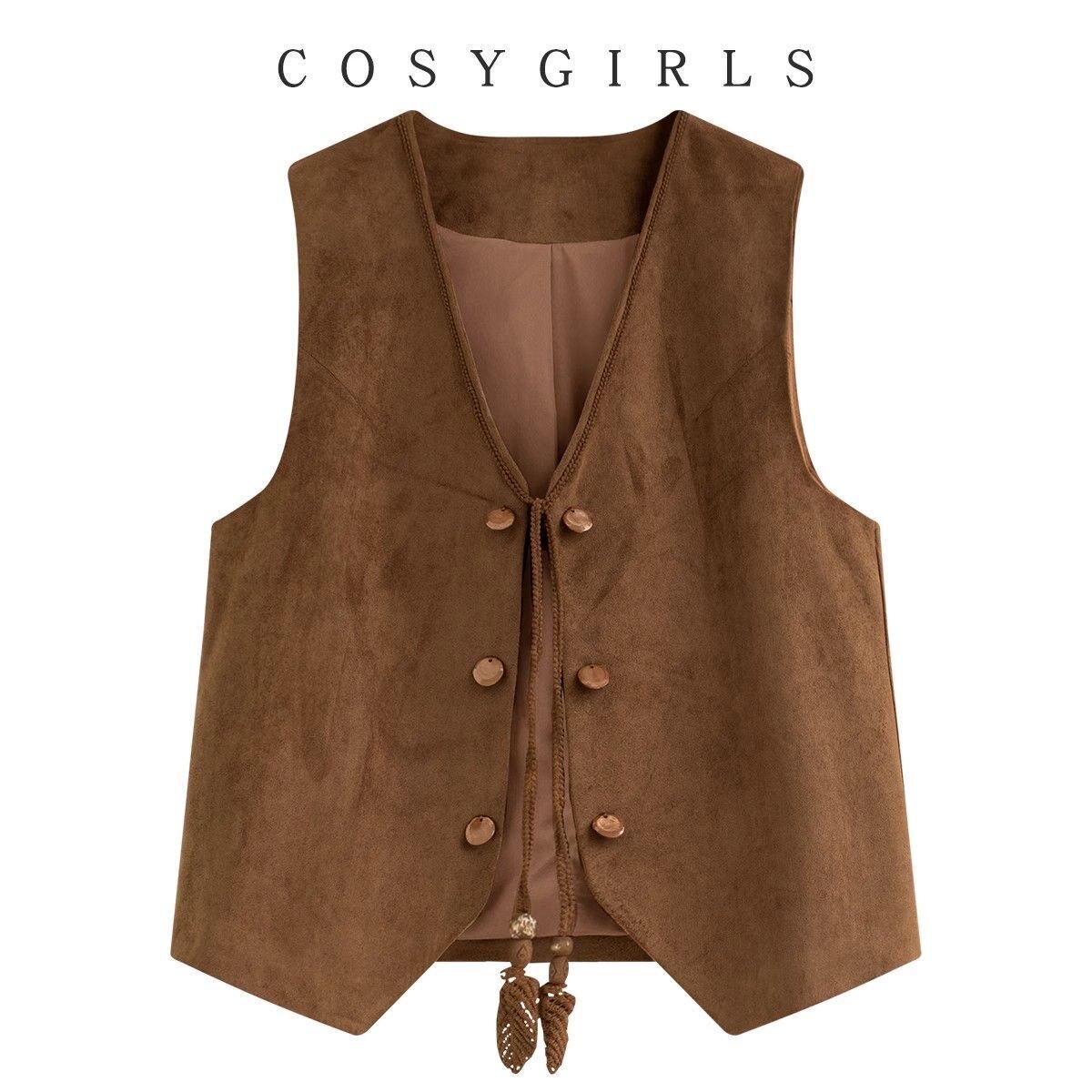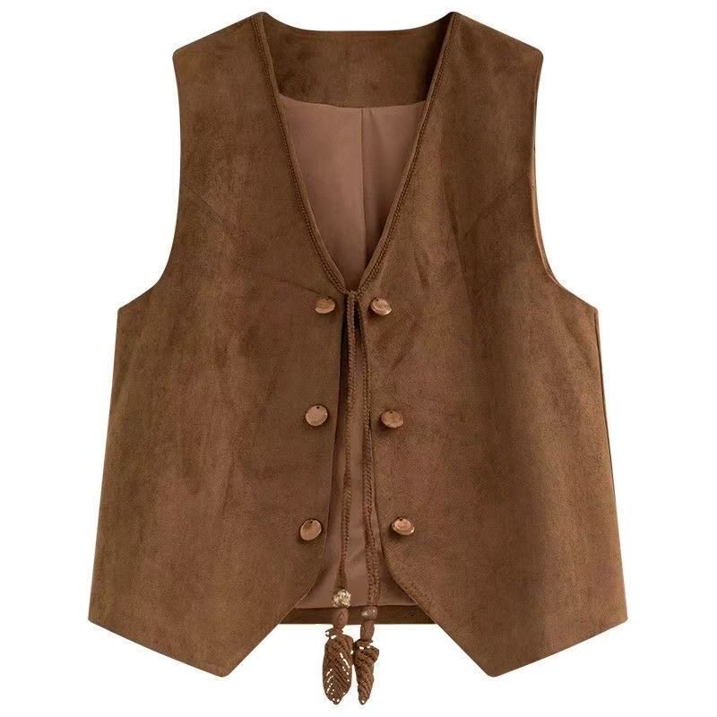 背心上衣坎肩 外搭无袖 2026新款 美拉德v领麂皮绒马甲女时髦短款