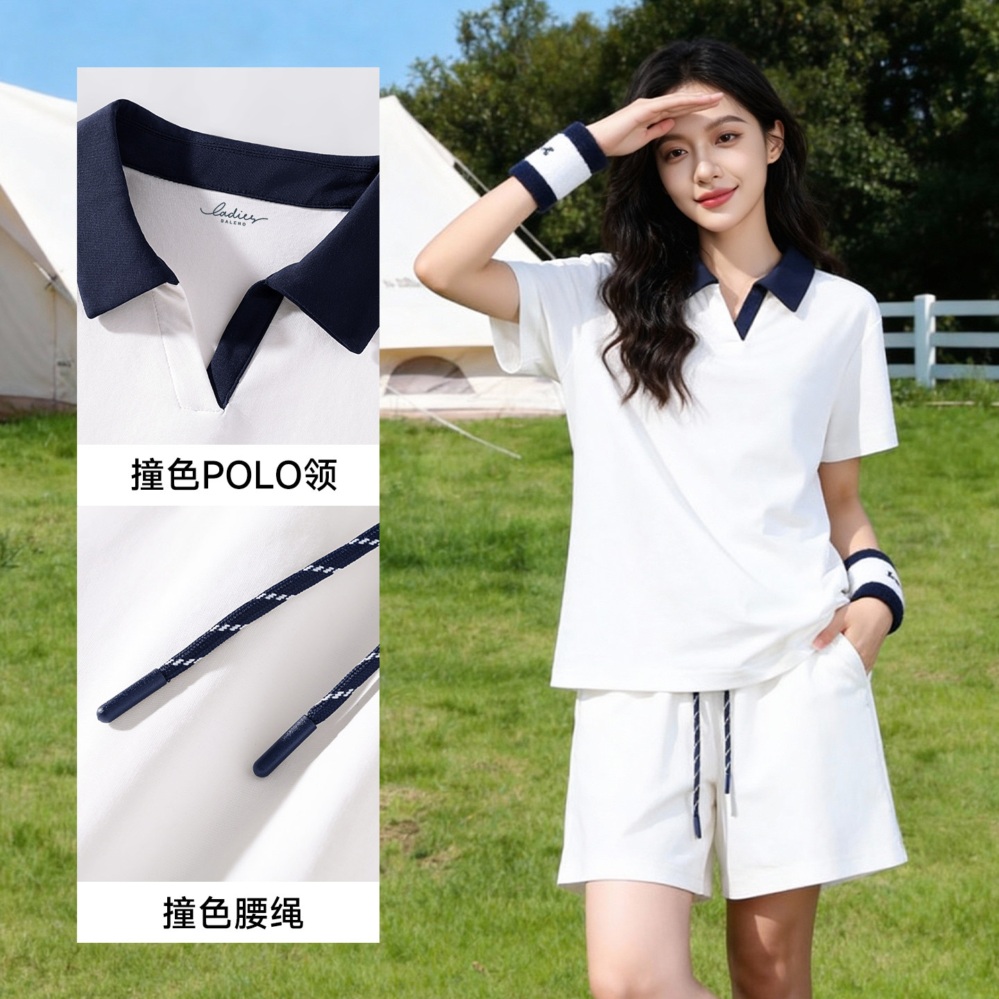 短裤 polo衫 网球运动穿搭一整套H 女夏2026新款 班尼路S&K藏青色套装