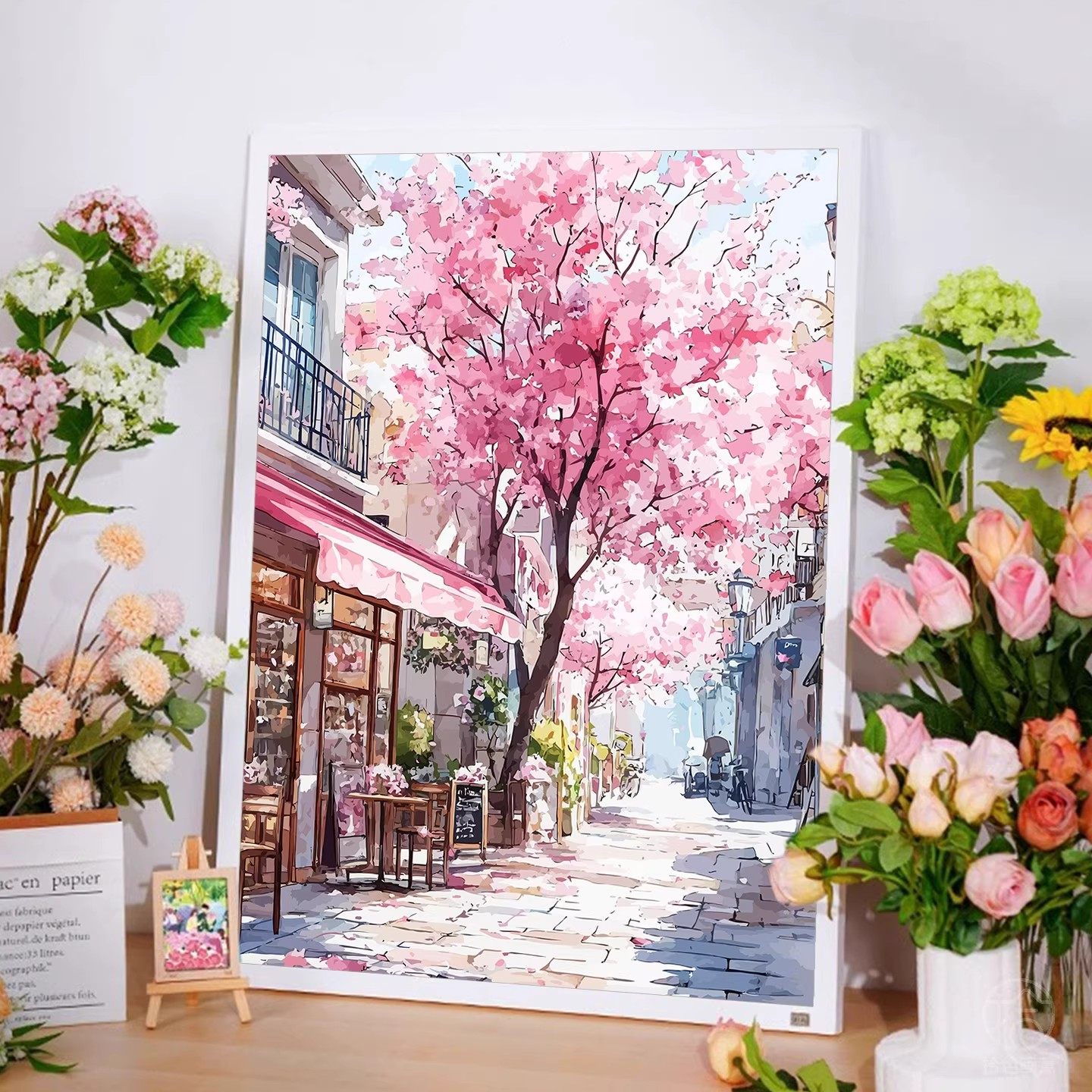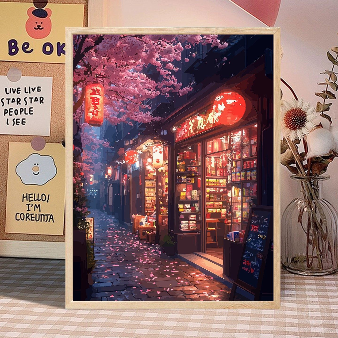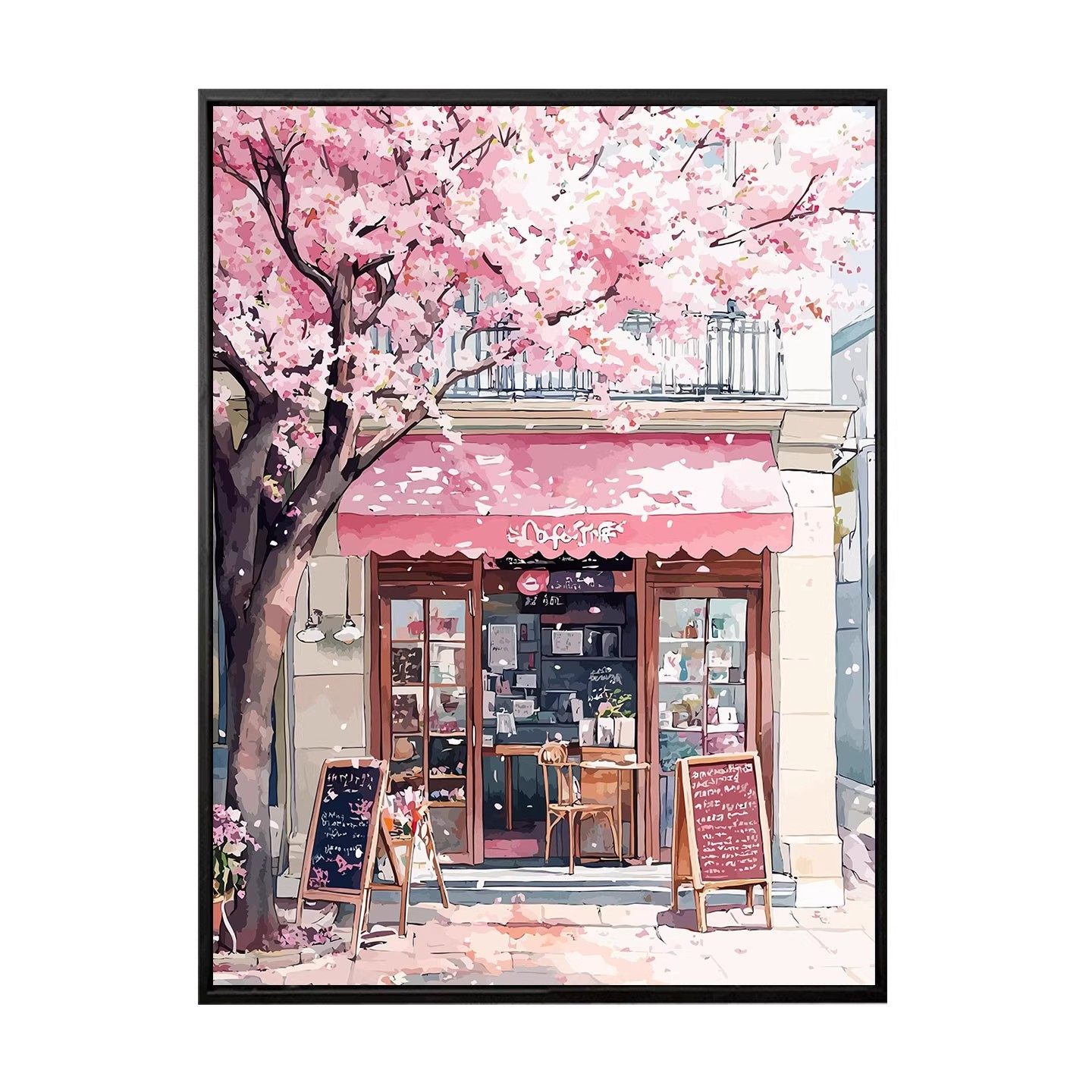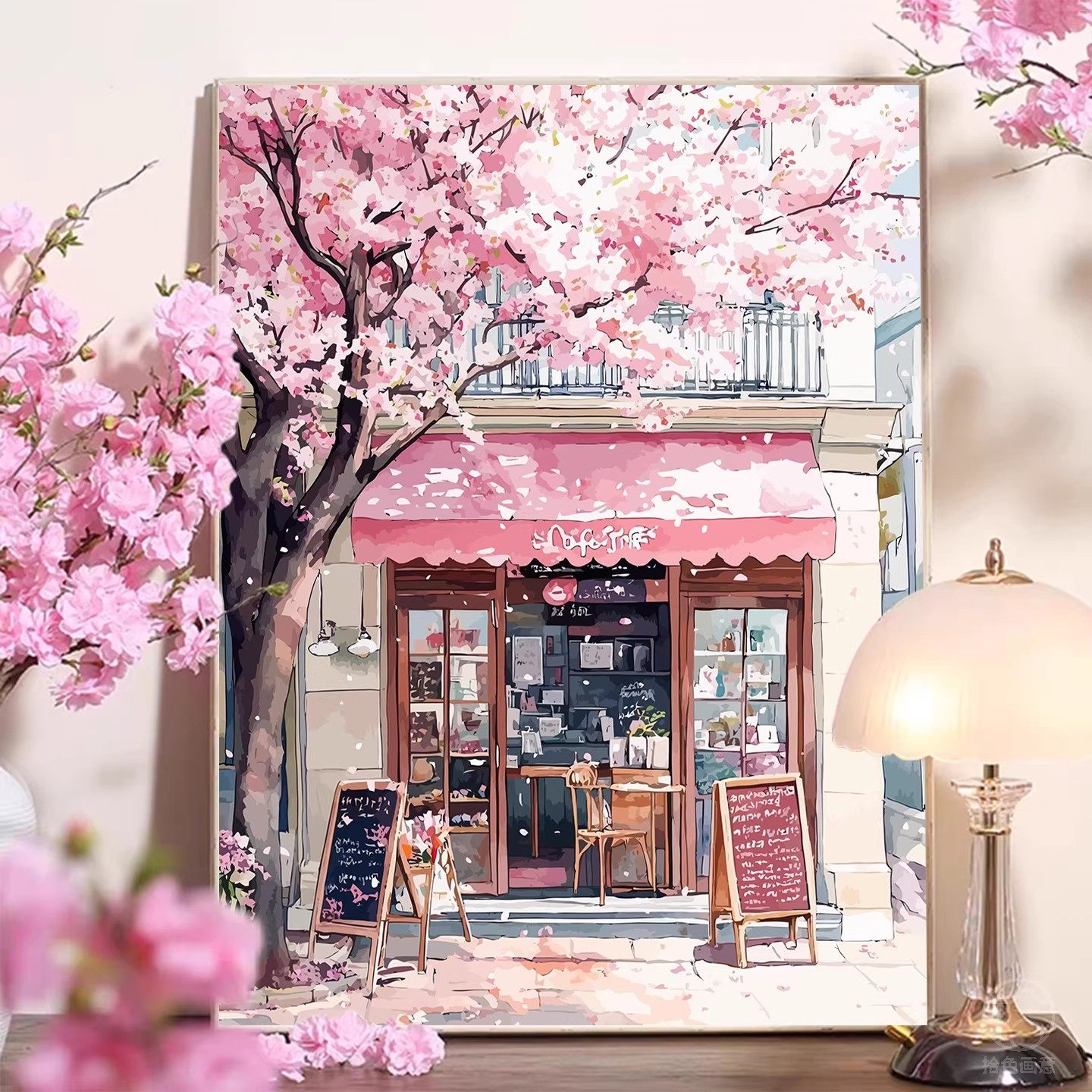 高颜值樱花小店日系装 饰画成品仿油画风景唯美清新卧室客厅摆挂画