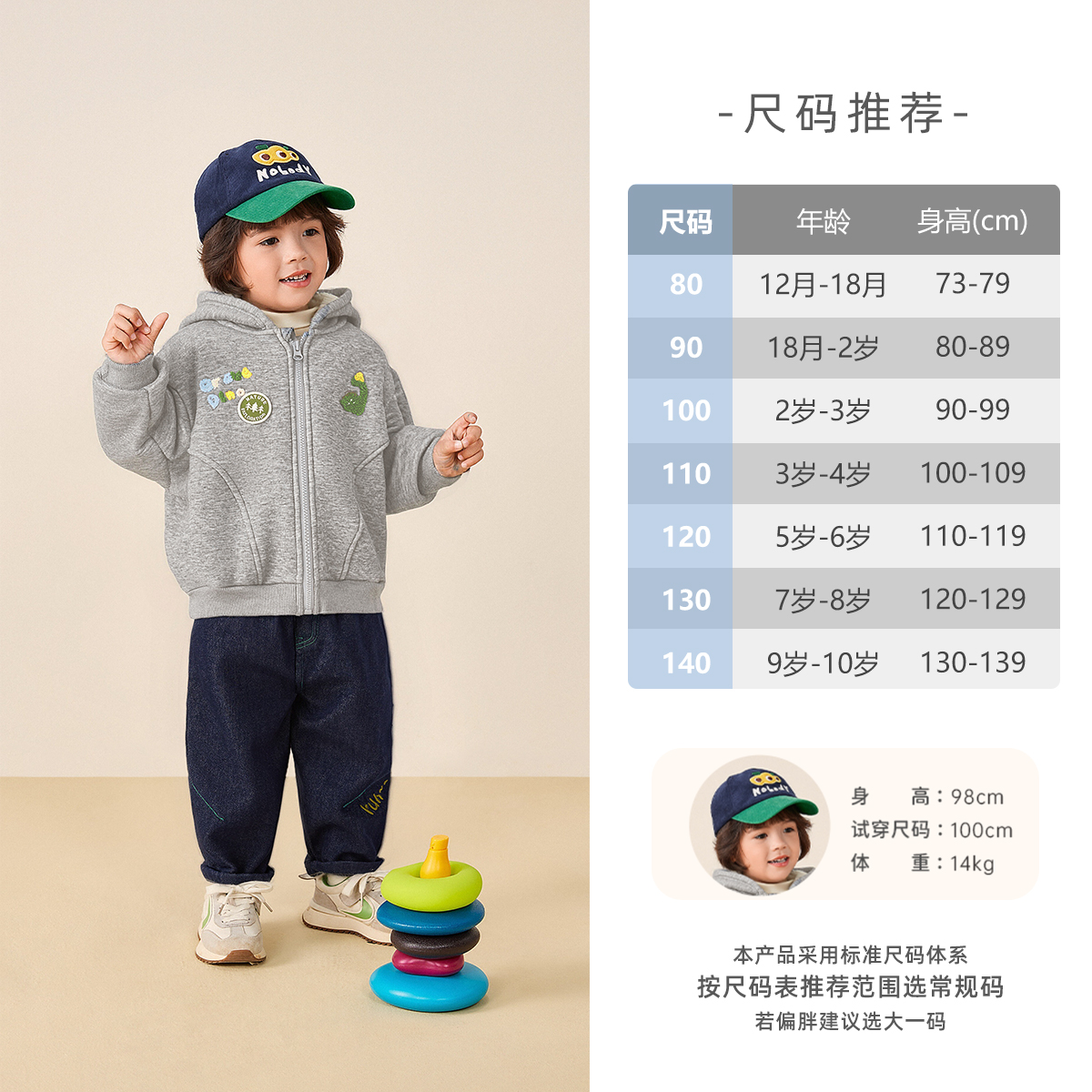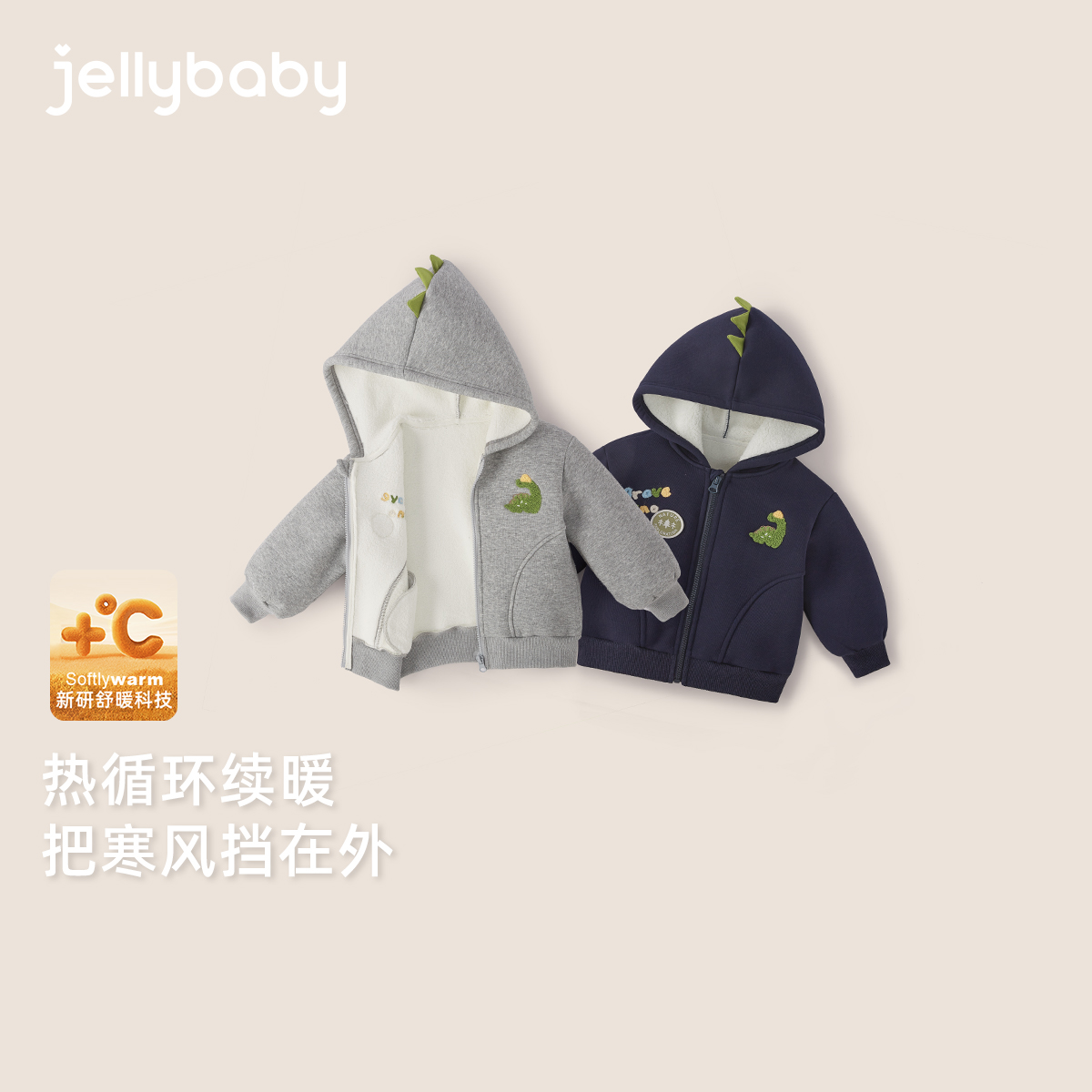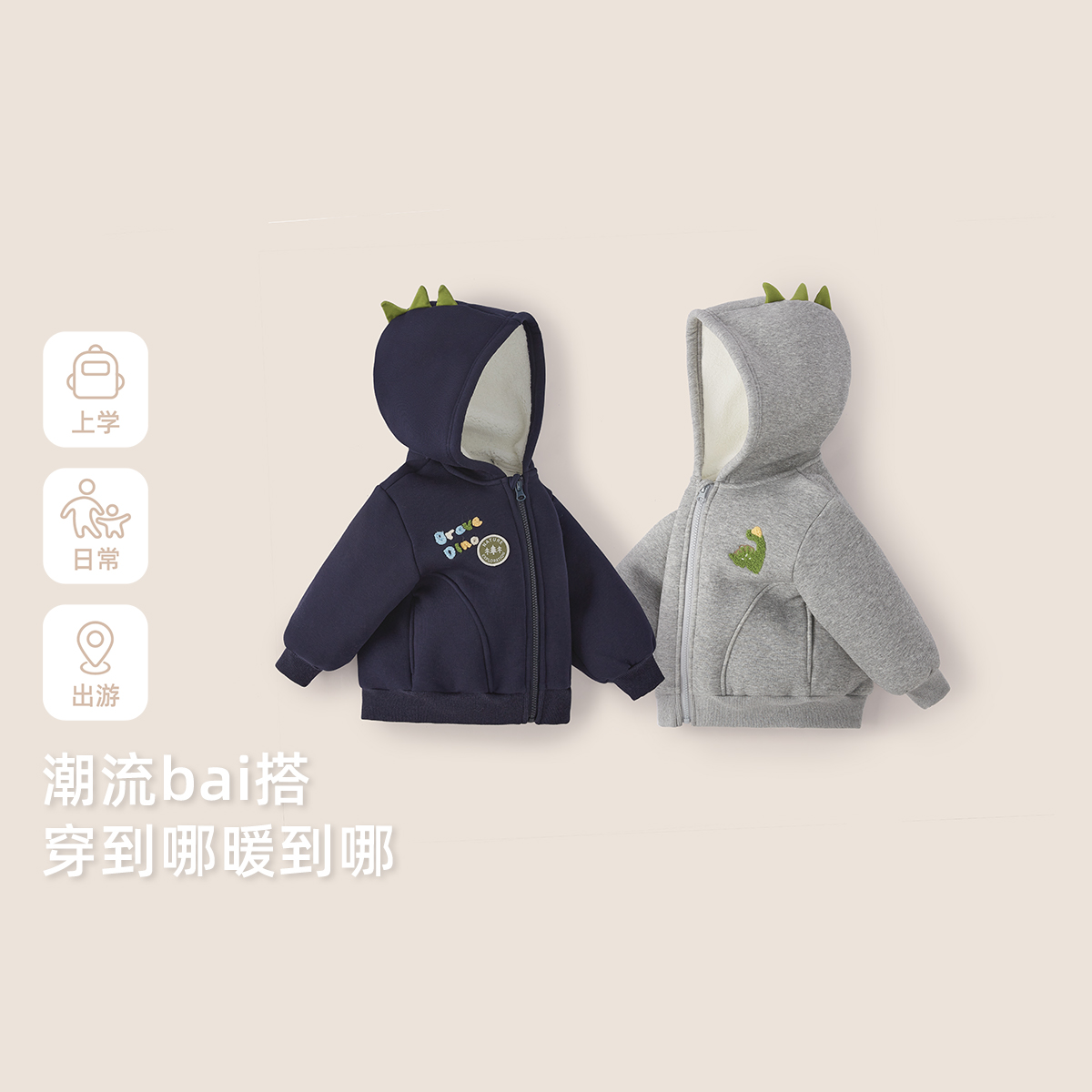 男童卫衣 男宝外套儿童秋冬恐龙萌趣加绒连帽上衣开衫 抗菌远红外