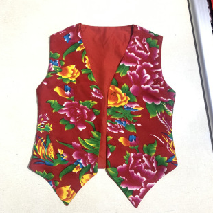东北大花布马甲男女坎肩民族风舞台演出服二人转表演网红嘻哈唐装