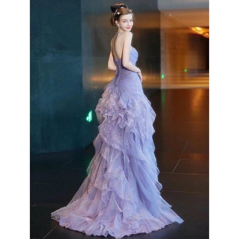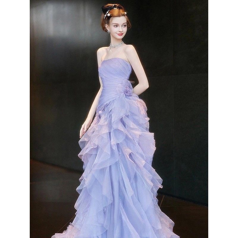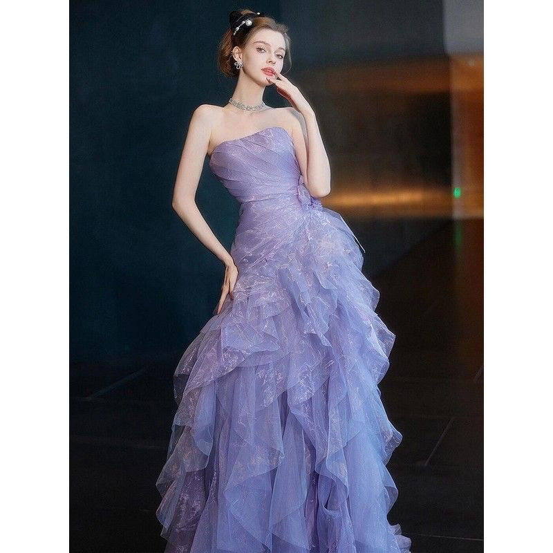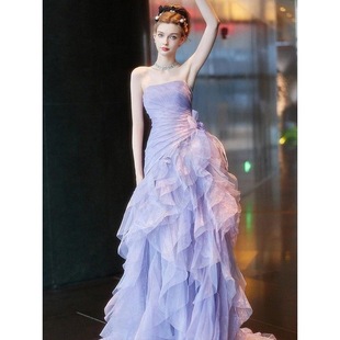 紫色晚礼服女抹胸超仙演出生日宴会年会气质主持人高端轻奢敬酒服