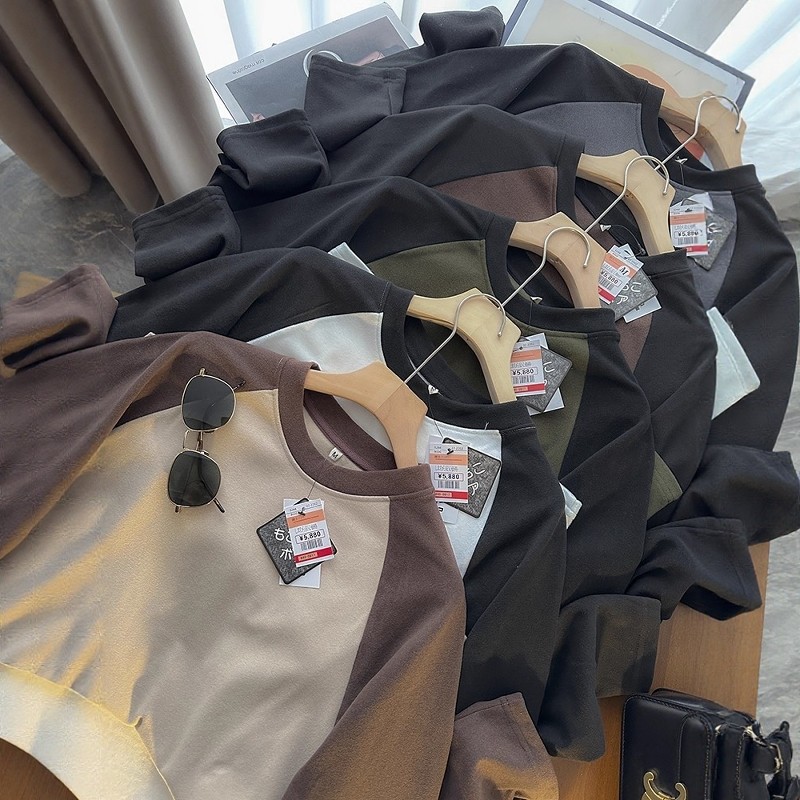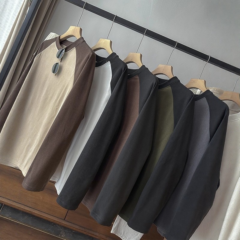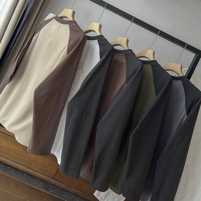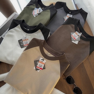 复古撞色双面德绒亲肤保暖打底衫 美式 T恤女冬 男女情侣款 走老美