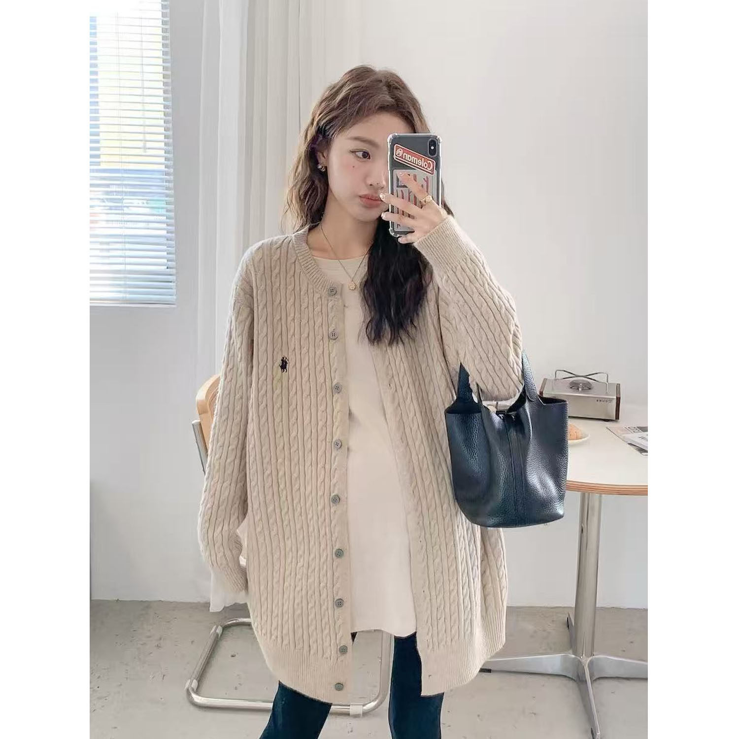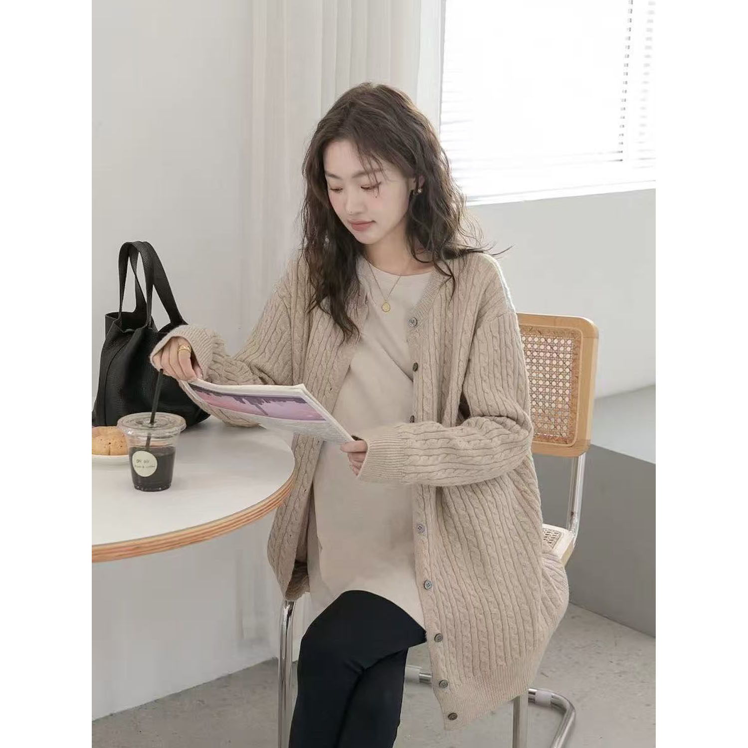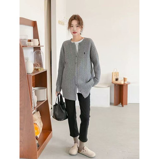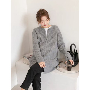 中长款 孕妇装 慵懒风宽松刺绣麻花针织开衫 2025新款 毛衣外套 秋冬季