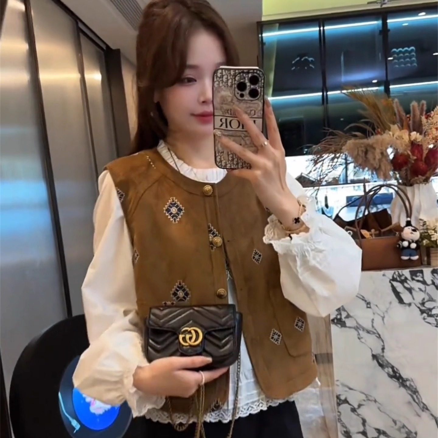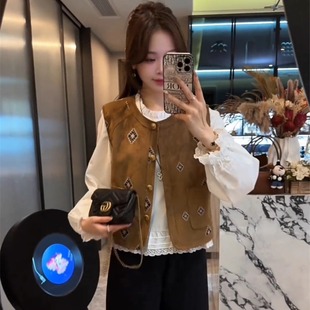 马甲女秋冬加厚叠穿坎肩马夹 老钱风灰色羊毛呢西装 AIMUSA 25新款
