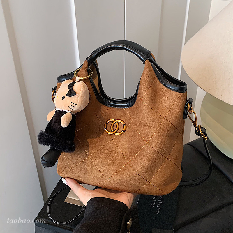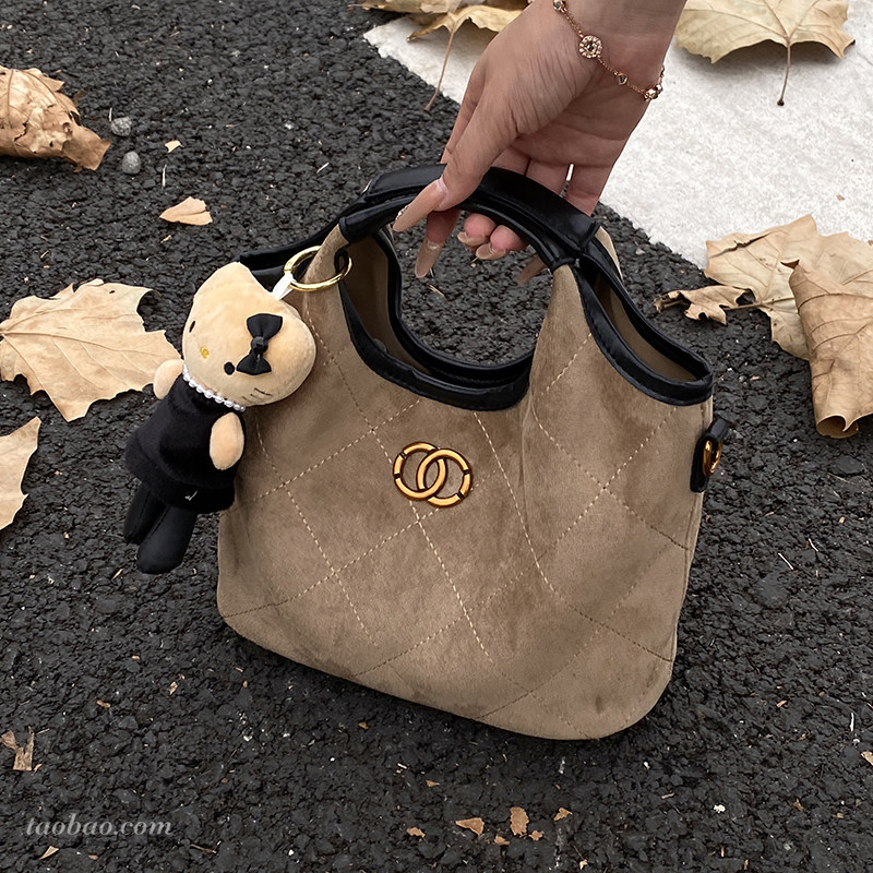 百搭斜挎包撞色手提水桶包小拎包 麂皮绒包包女2025新款 秋冬季 爆款
