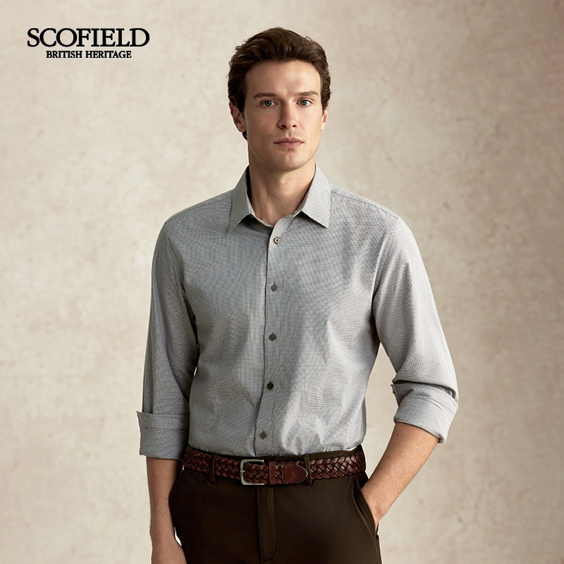 衬衫 SCOFIELD男新款 100%棉小格子简约休闲挺括领型长袖