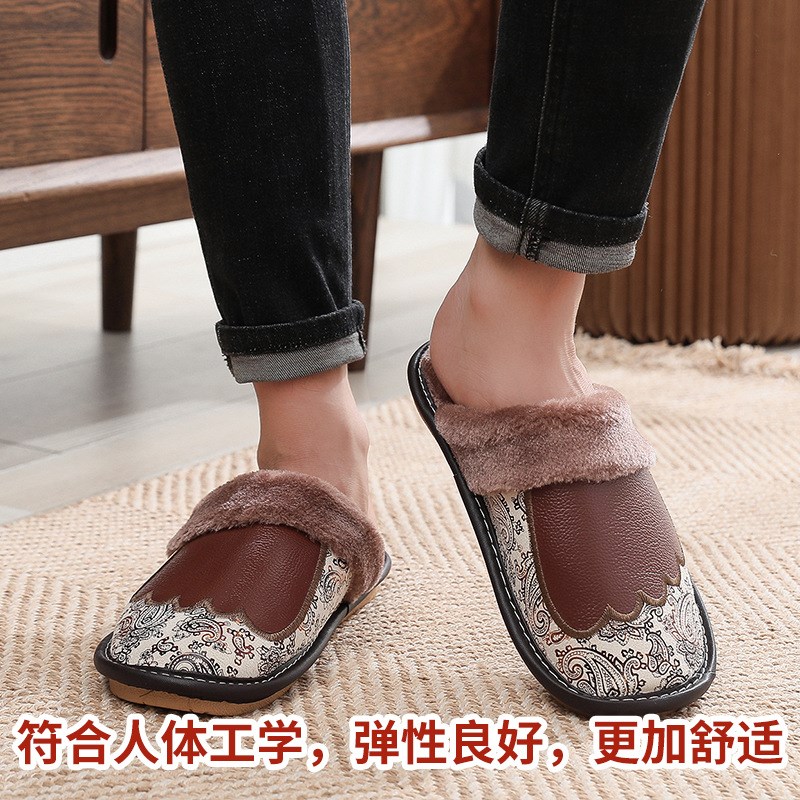 男冬 情侣家q用室内居家防滑防水橡胶底家居棉拖鞋 皮拖鞋 女秋冬款