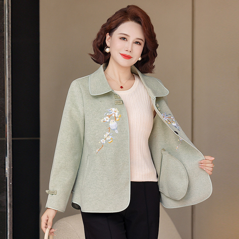 中老年女装 双面呢外套2025时尚 春秋国风毛呢上衣 中式 9088妈妈秋装