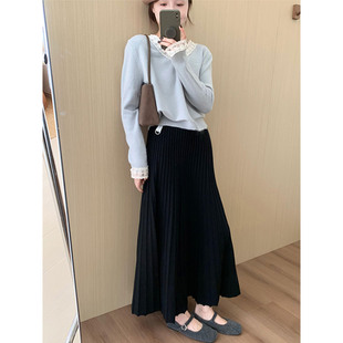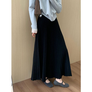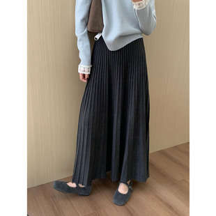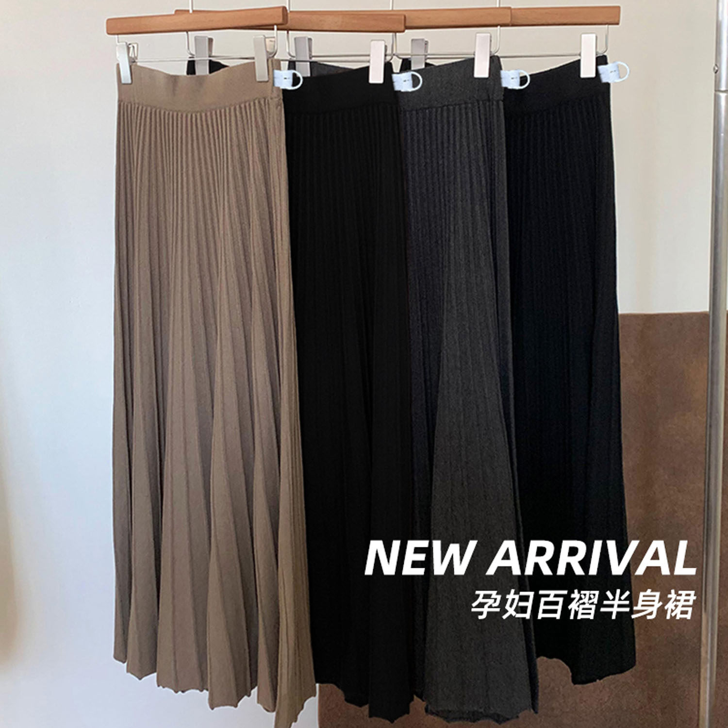 显瘦A字百褶伞裙子 中长款 无托腹孕妇针织半身裙女秋冬季 2025新款