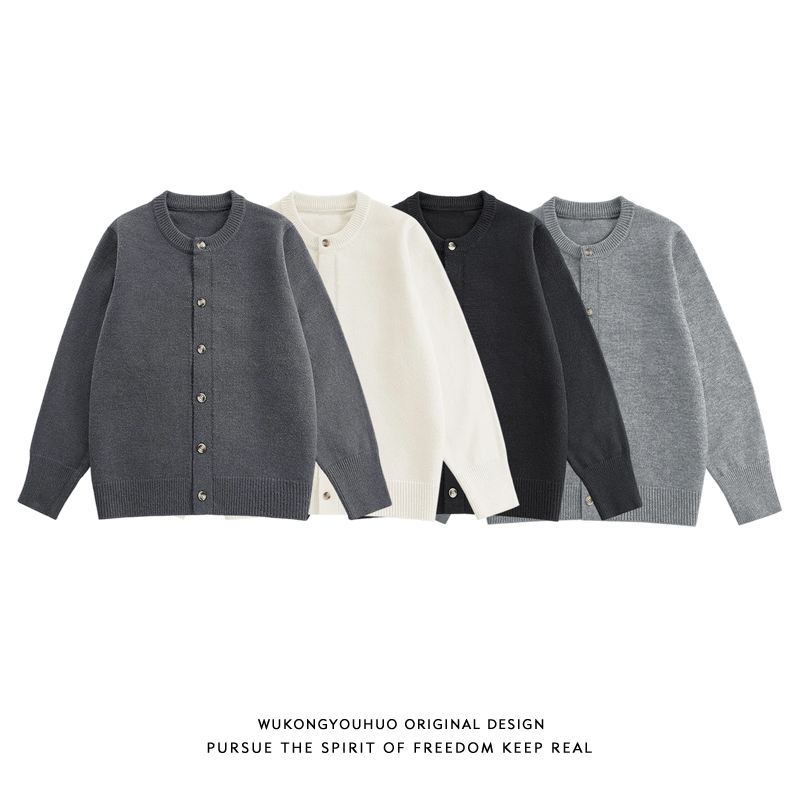 毛衣 外套男女简约纯色圆领开衫 悟空有货秋季 慵懒风休闲百搭针织衫