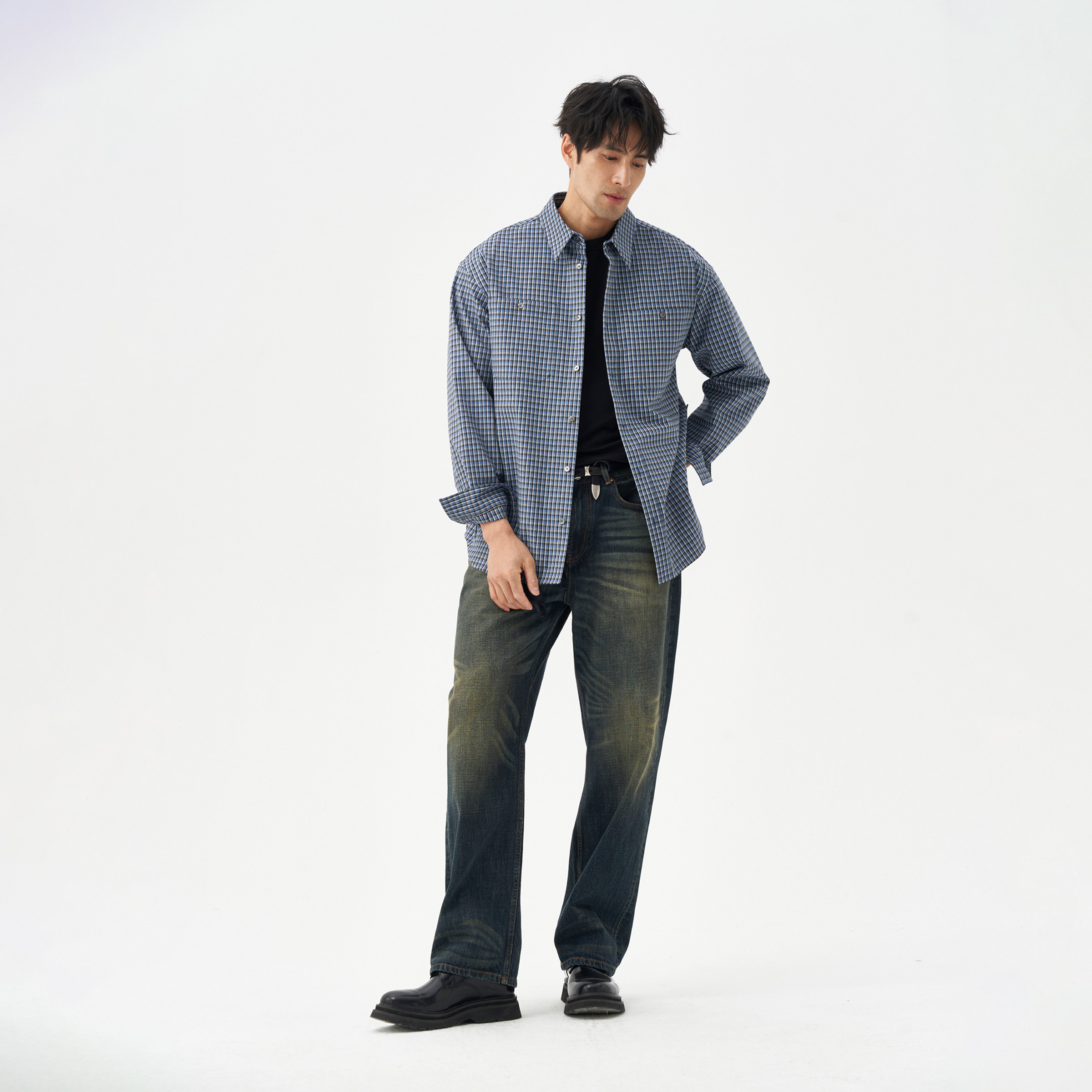 新品 秋季 真维斯复古牛仔衬衫 男女休闲衬衣外套KZ 王一博同款
