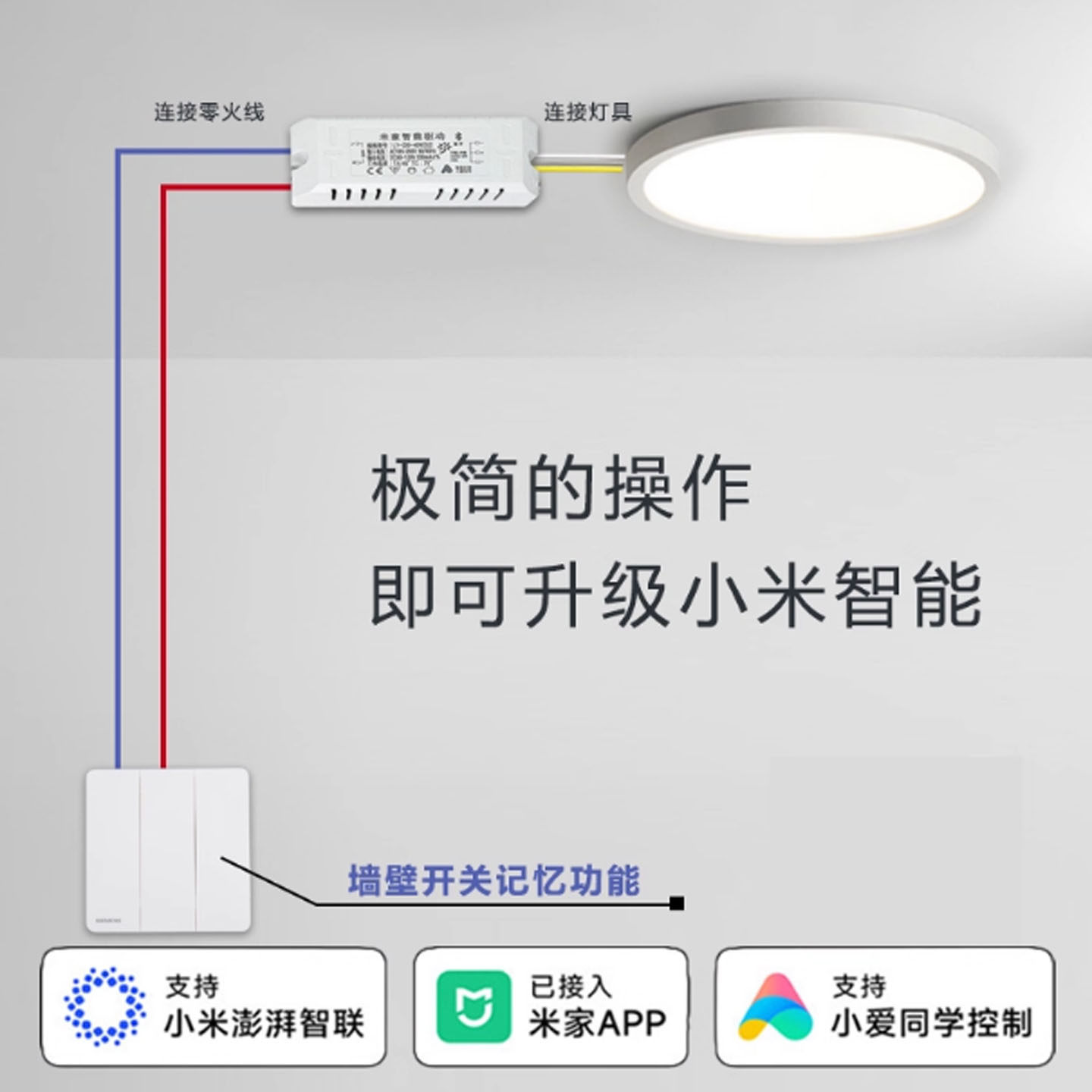 Led吸顶灯调光调色电源驱动米家灯具灵动开关小爱同学语音镇流器