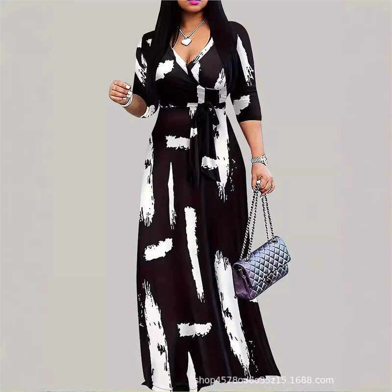 印花连衣裙女海岛裙度假 NanaJacqueline挂脖花边长款 李梦同款