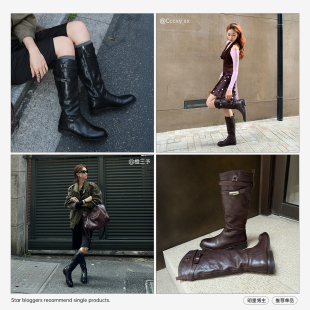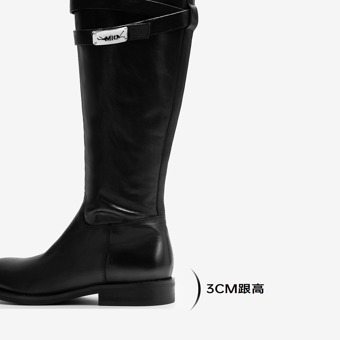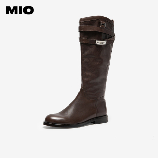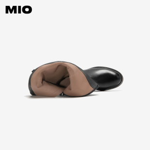 MIO米奥骑士靴2025冬季 圆头粗跟增高侧拉链英伦高筒中跟女靴 新款