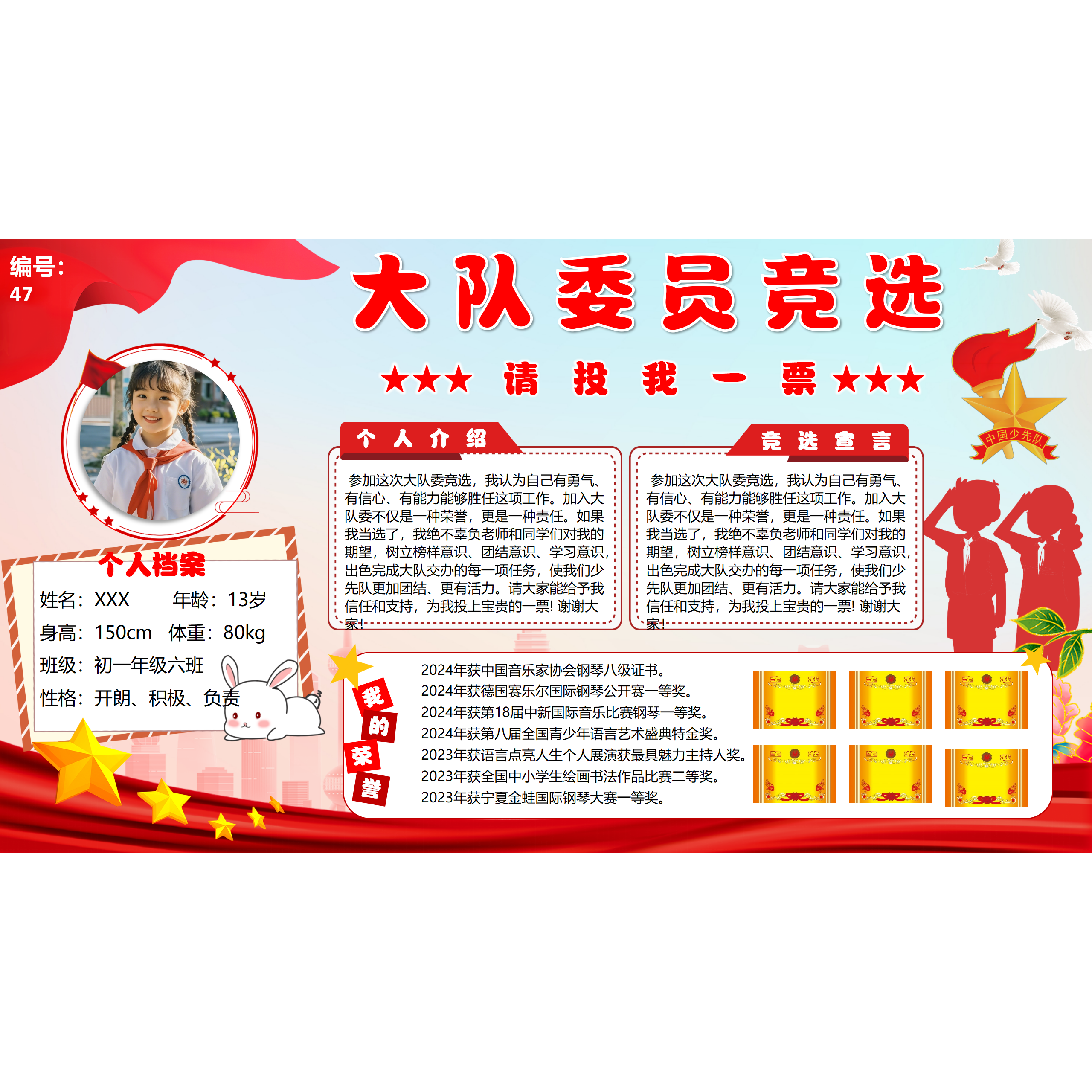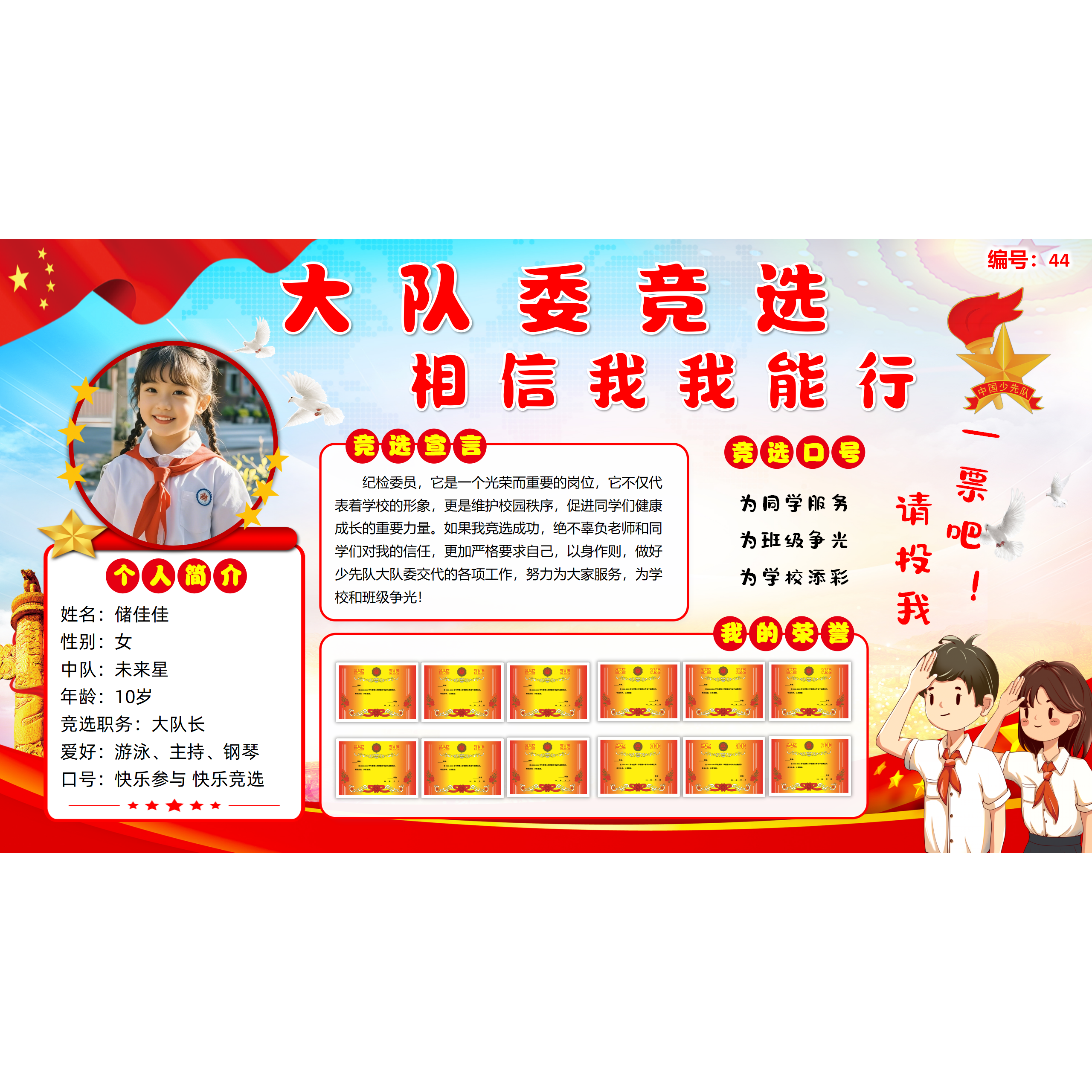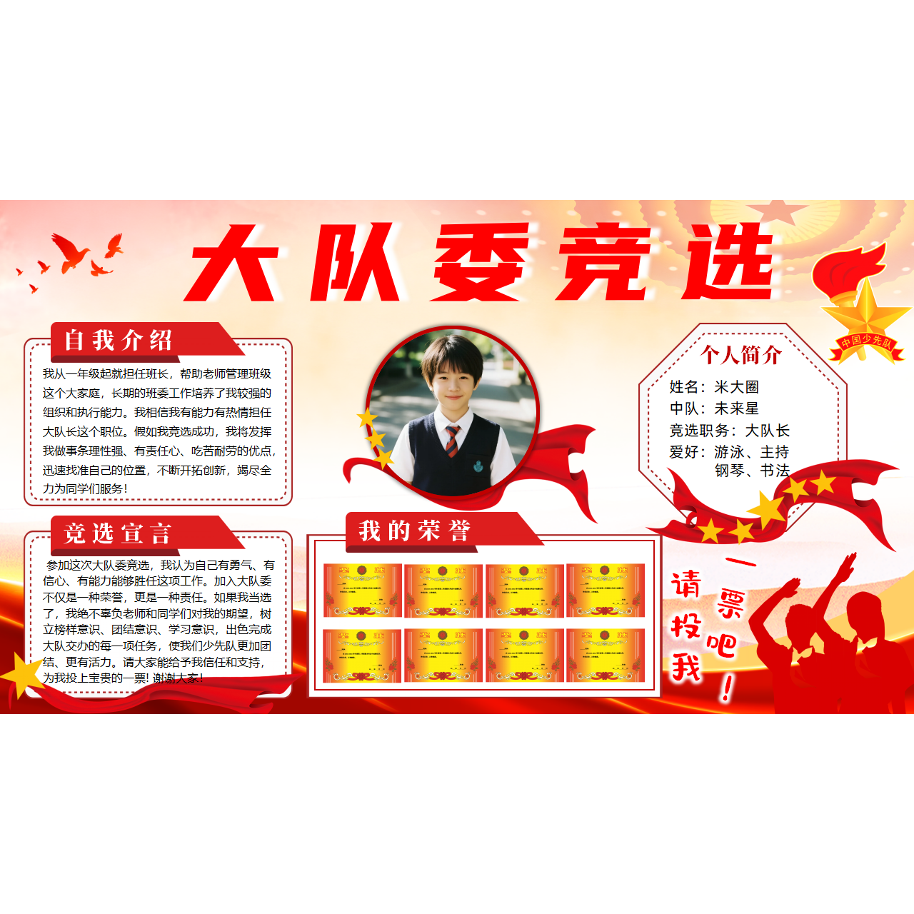 少先队大队委大队长竞选A4竖版 海报PPT可编辑修A3 9横版