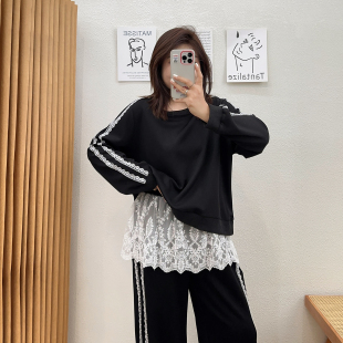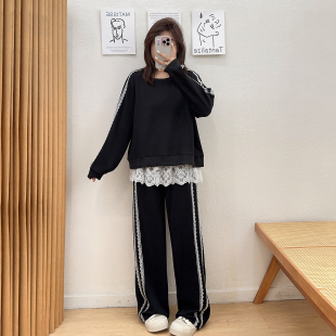 卫衣 胖mm圆领长袖 蕾丝拼接阔腿裤 2026秋季 宛宛大码 显瘦套装 女装