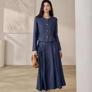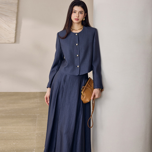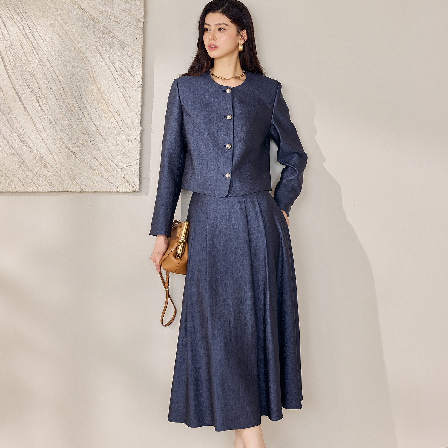 罗衣气质光感亮面两件套通勤OL短外套 套裙12659 大摆半身裙套装