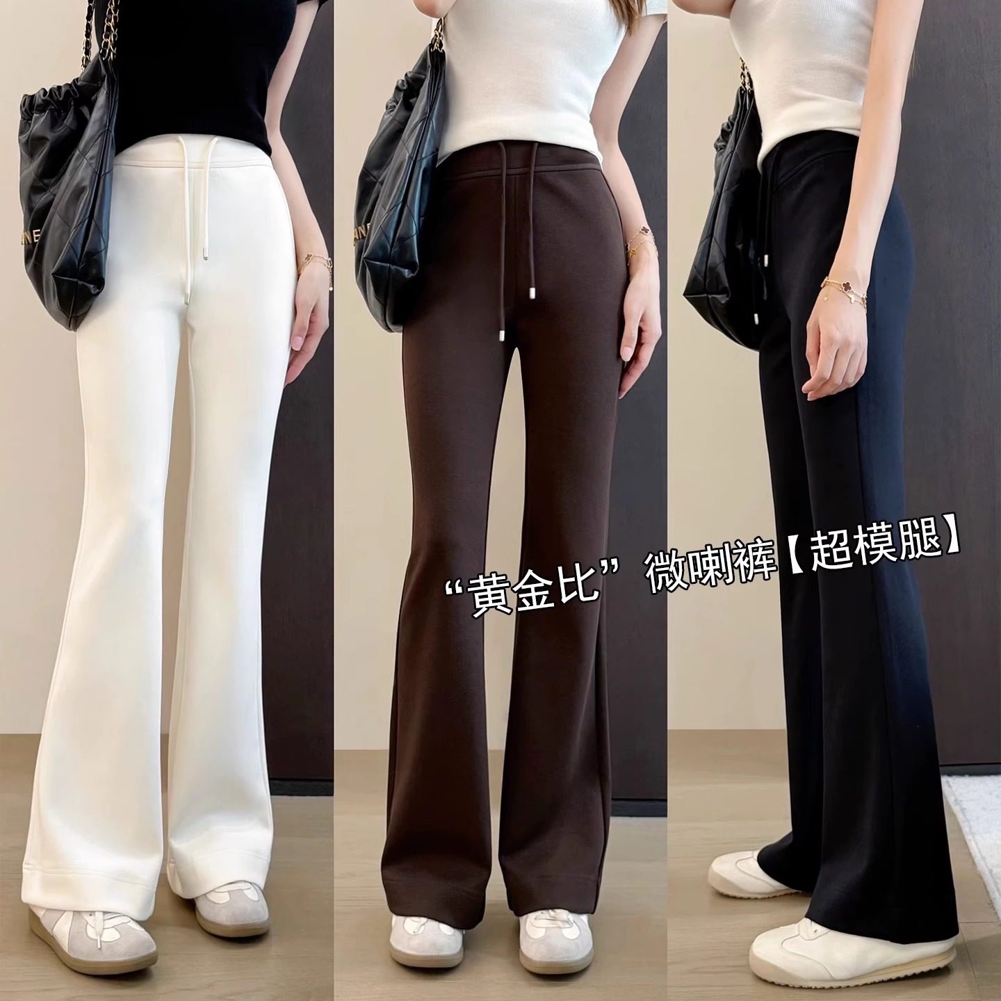 子羊毛呢裤 女高腰显瘦休闲长裤 瑜伽提臀喇叭裤 Lu系显身材微喇叭裤