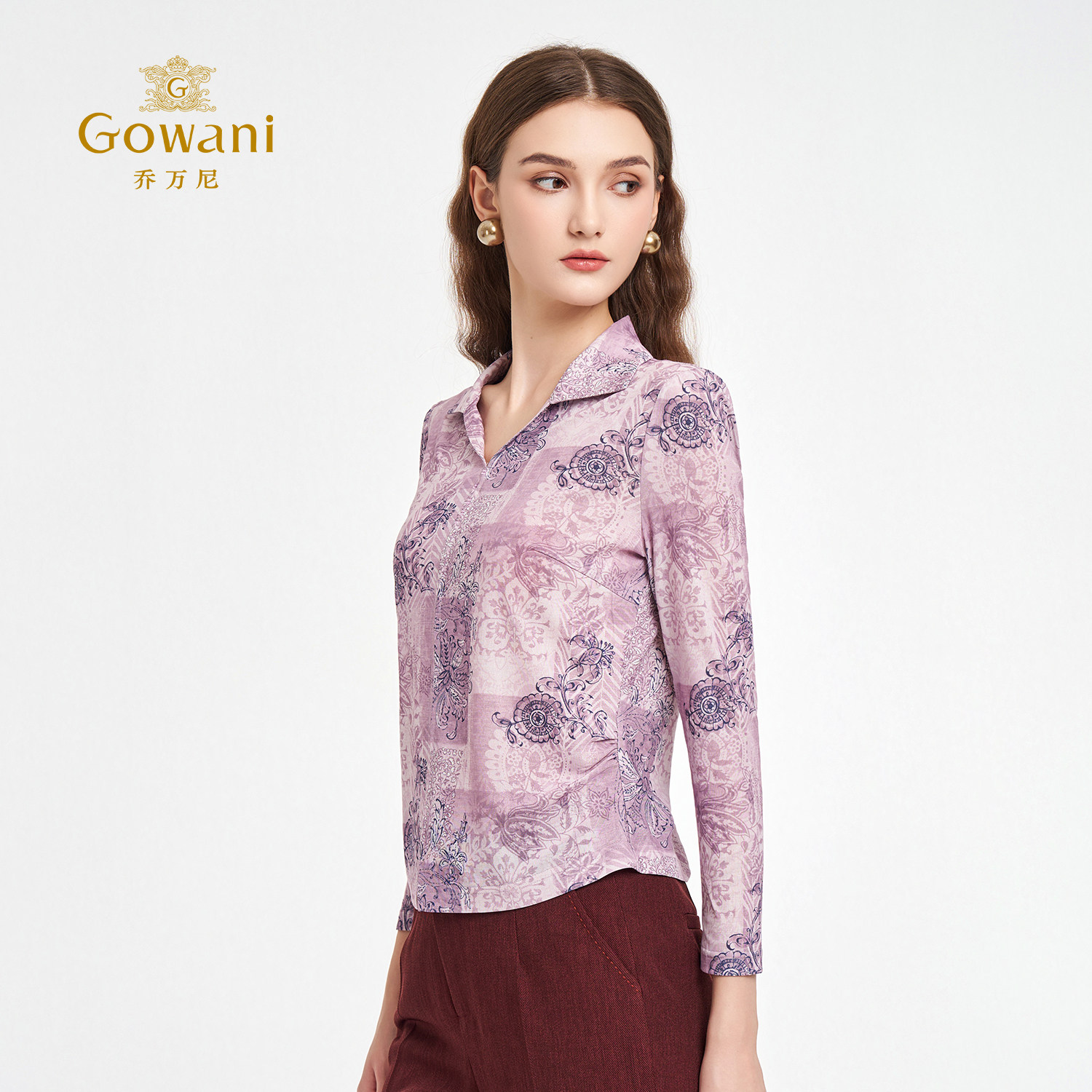 显瘦衬衫 上衣印花修身 ED3C225 气质轻奢弹力长袖 乔万尼2026春新款