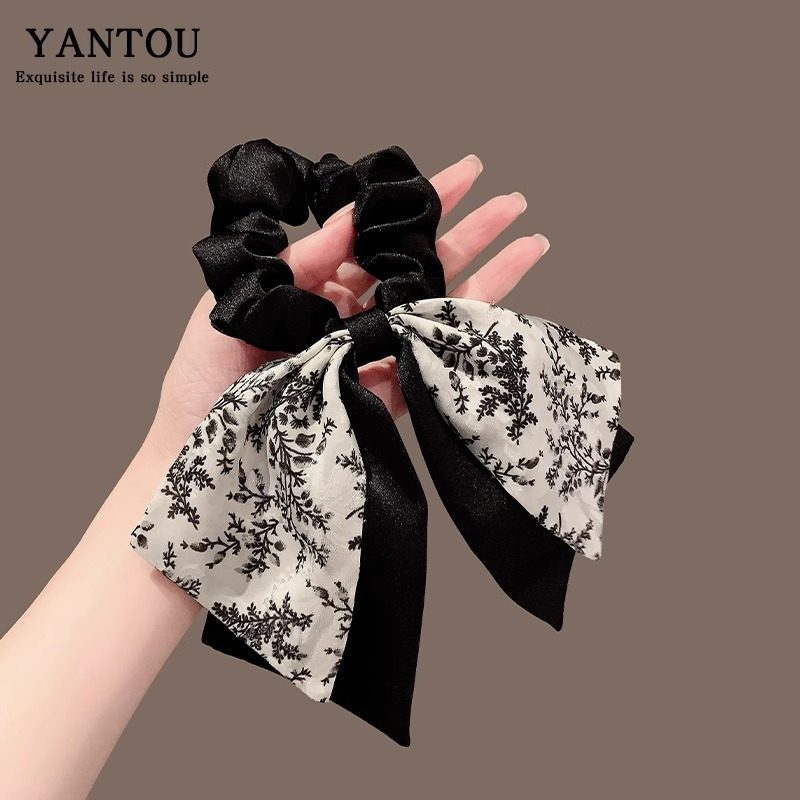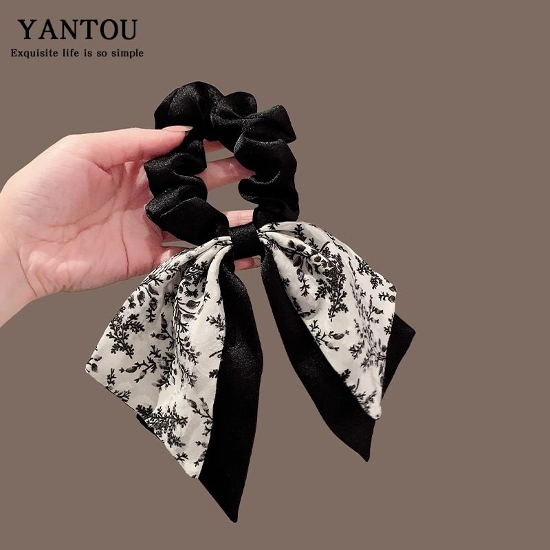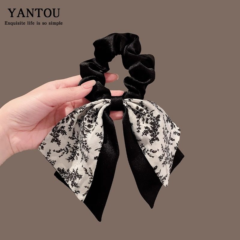 新中式 森系碎花蝴蝶结飘带发圈古风绑发头绳气质扎低丸子头皮筋女