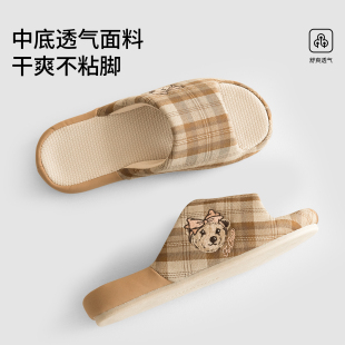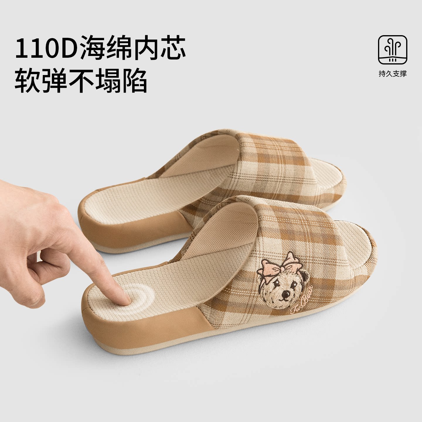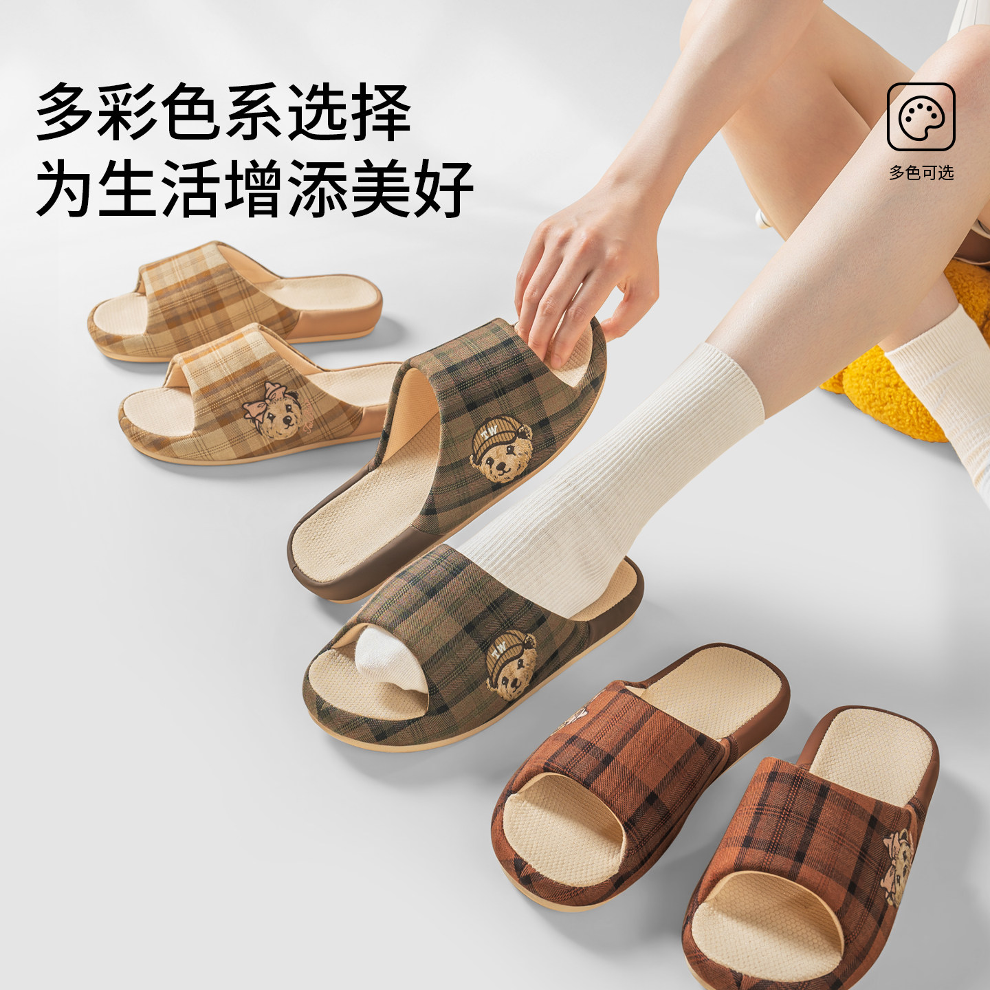 子女 家居室内吸汗防滑鞋 TeenieWeenie小熊刺绣棉麻布拖鞋 情侣冬季