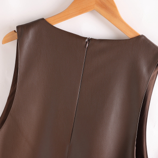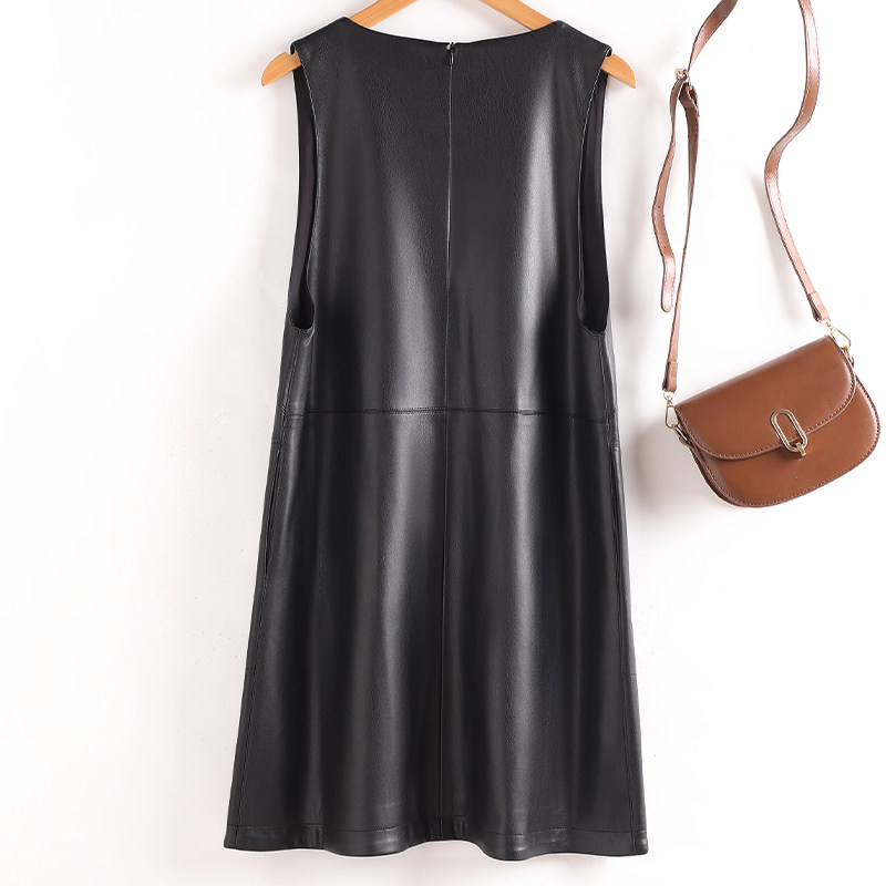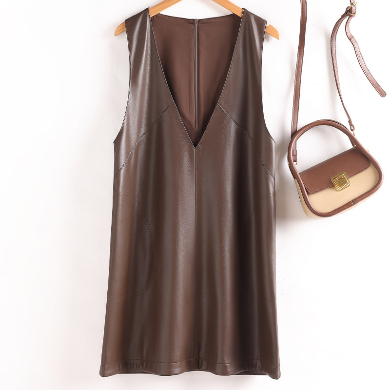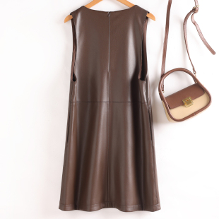2025秋季 海宁真皮马甲连衣裙女宽松显瘦羊皮A字皮裙V领背心裙 新款