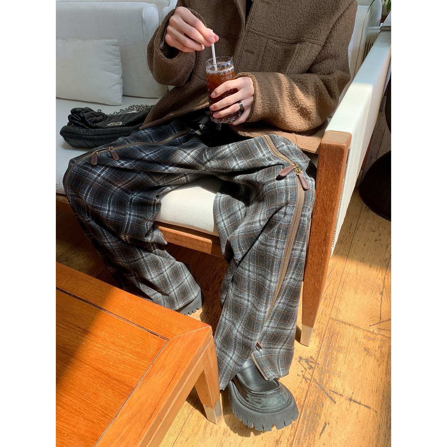 百搭拖地长裤 子宽松直筒阔腿裤 女秋冬加绒裤 pusumede软糯休闲裤