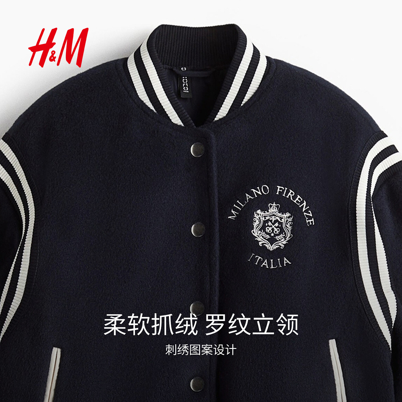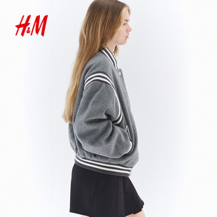 穿搭棒球夹棉长袖 冬日中性美式 外套1303195 棉服2025年新款 HM女装