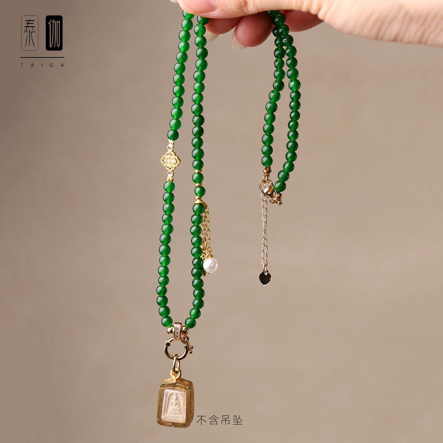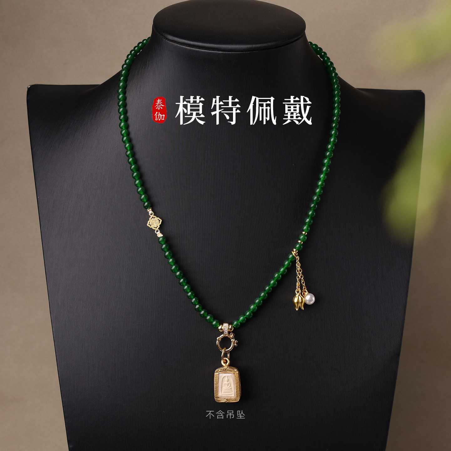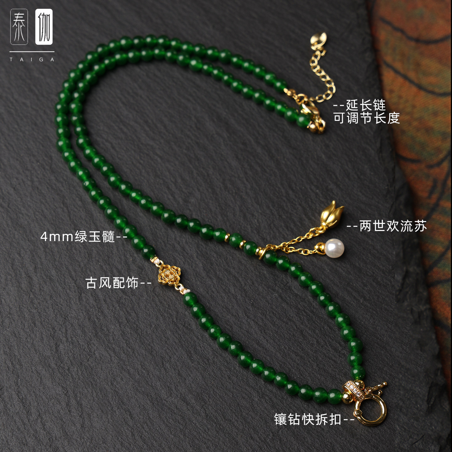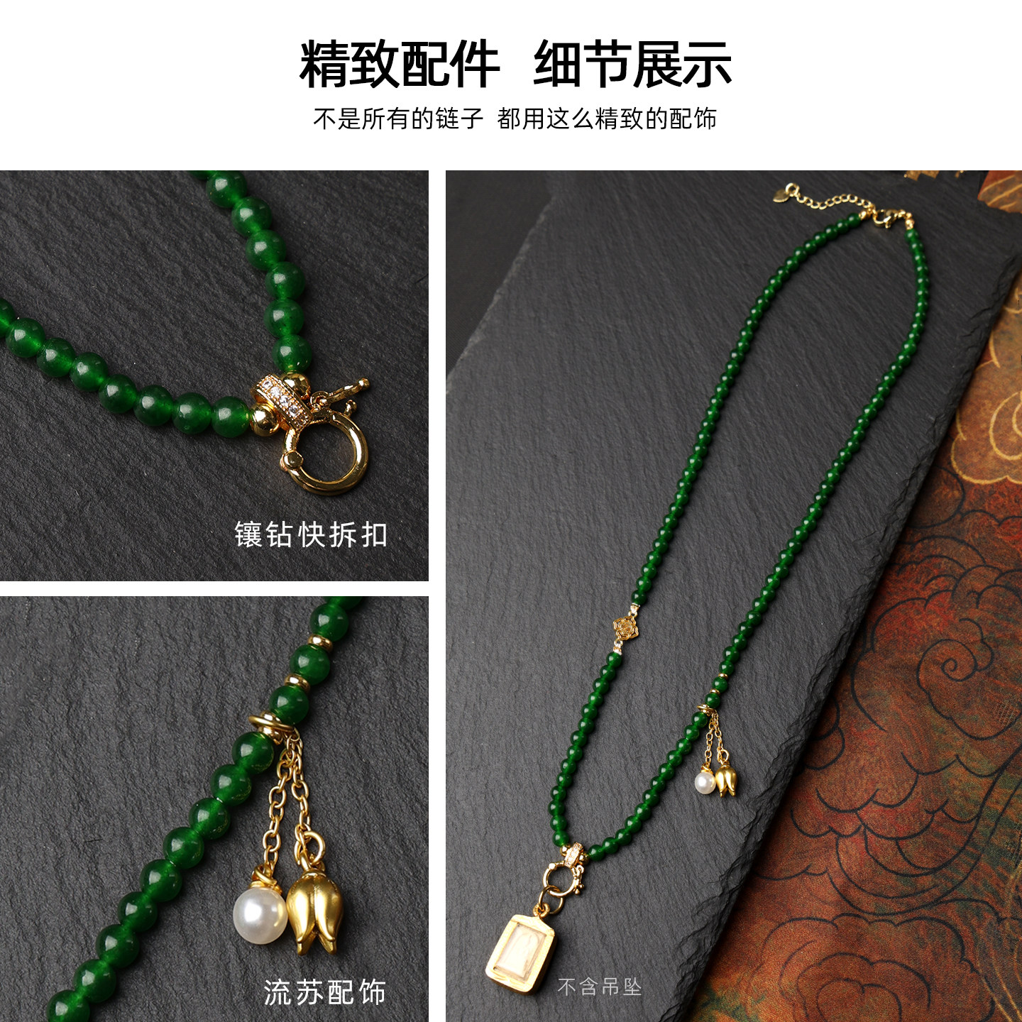 新中式 绿玉髓锁骨链短链流苏项链唐卡挂链黄金玉石吊坠链国风项链