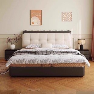 法式 复古真皮床现代简约主卧室高端大气1米8双人床储物婚床软包床
