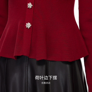 Moda针织衫 红色新年毛衣法式 女2026春季 荷叶边收腰修身 新款 Vero