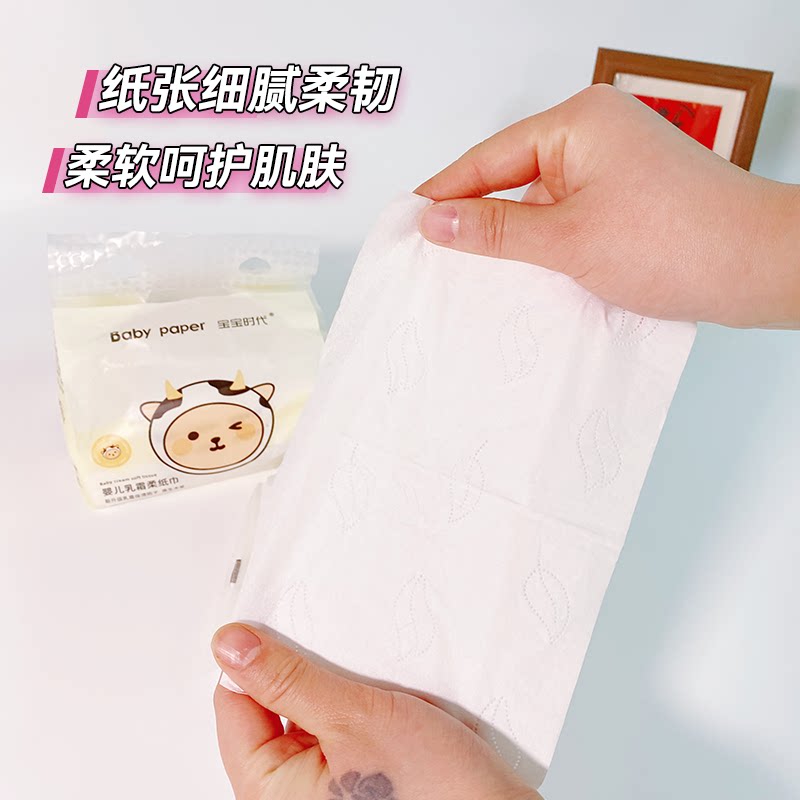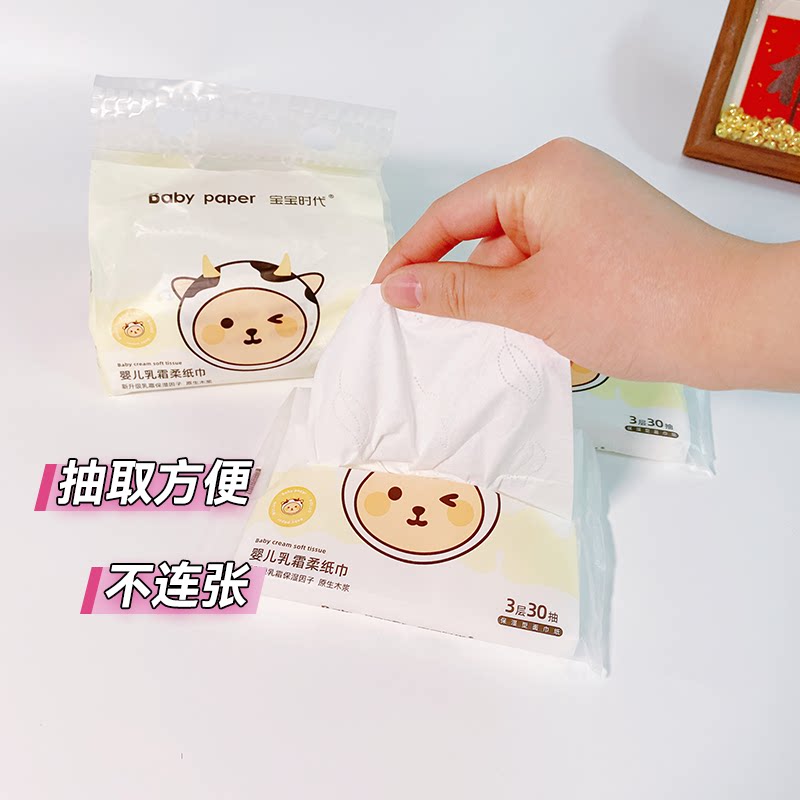 宝宝时代一次性婴儿乳霜纸巾30包亲肤柔软原生木浆家用纸巾