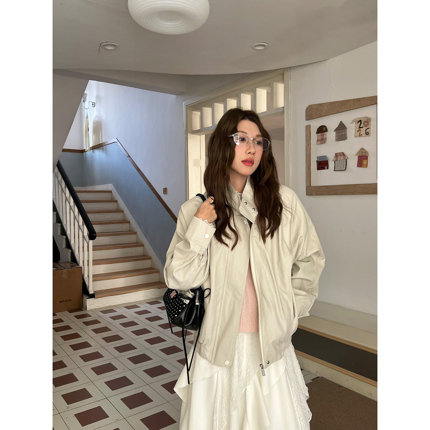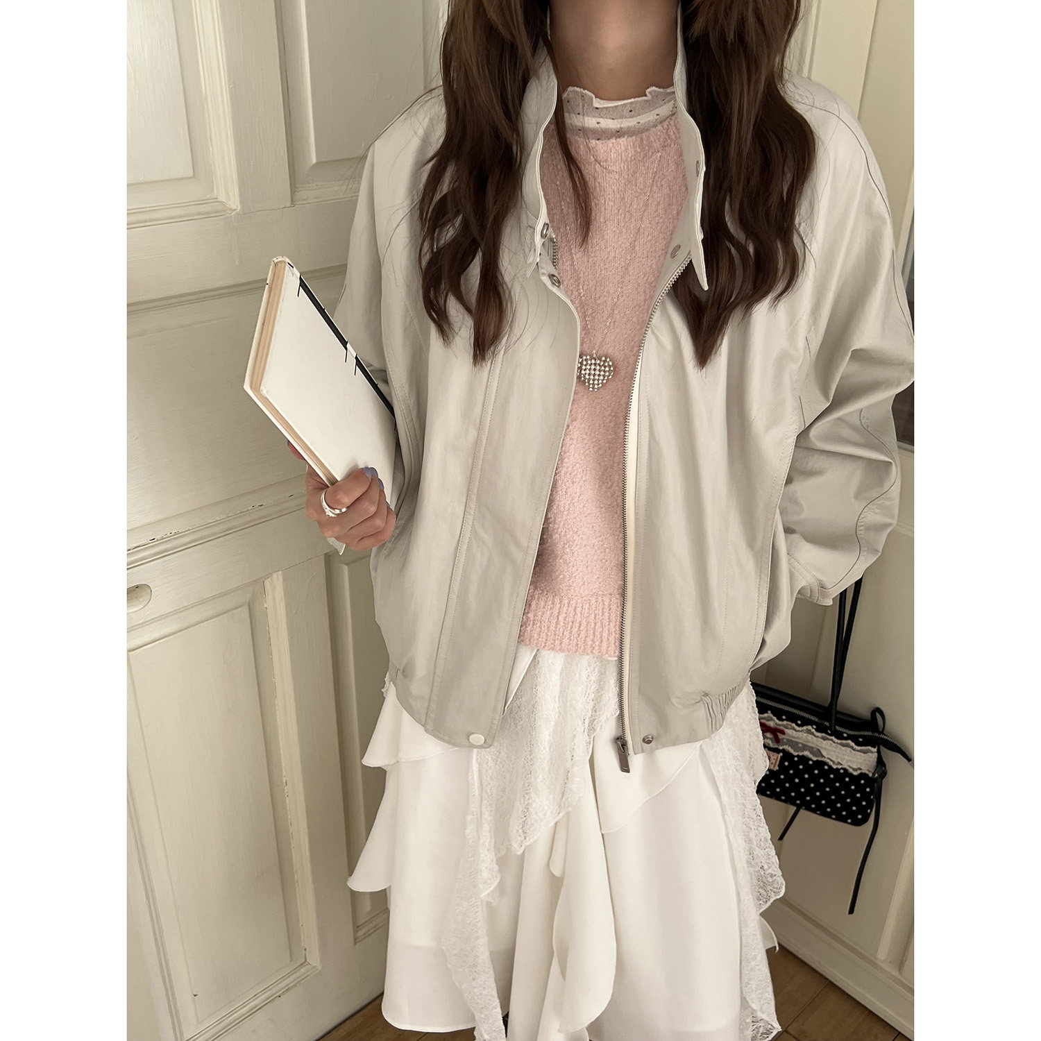 休闲短外套 春季 吴宝珠 韩系简约风气质杏色立领皮衣女2026新款