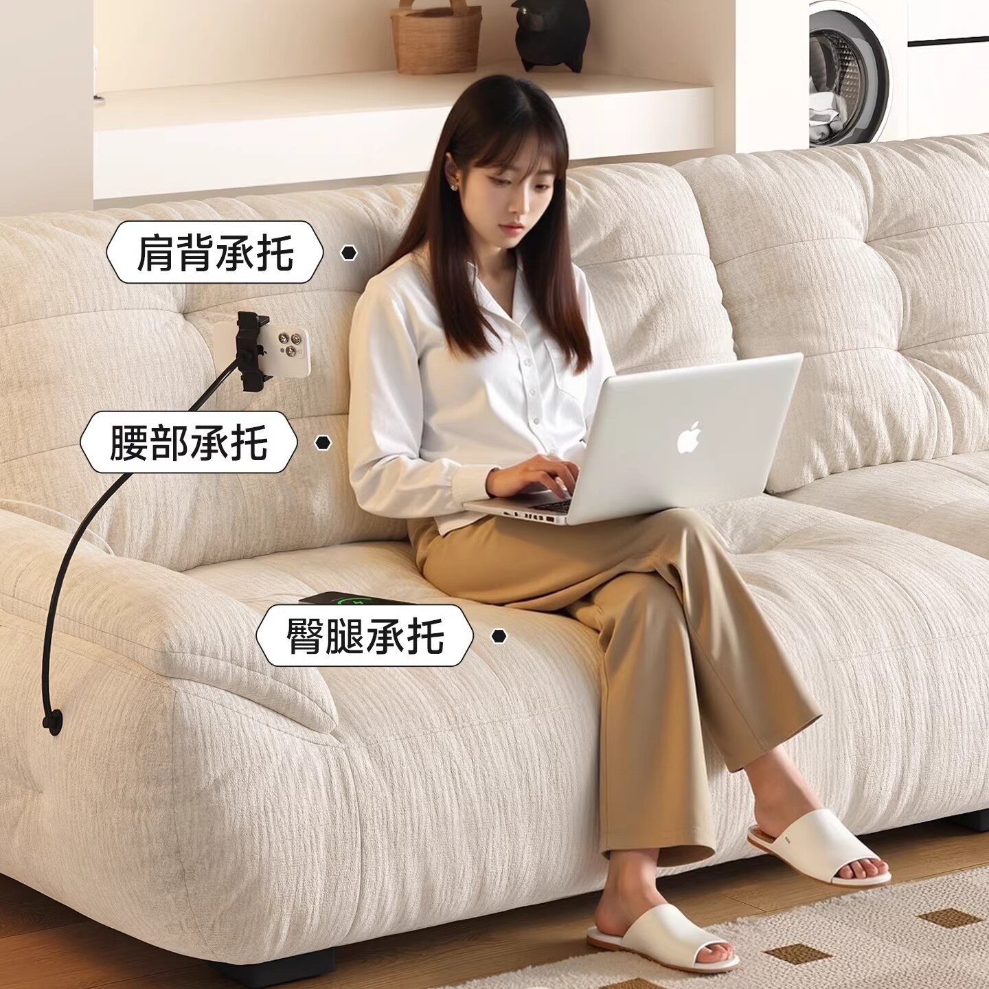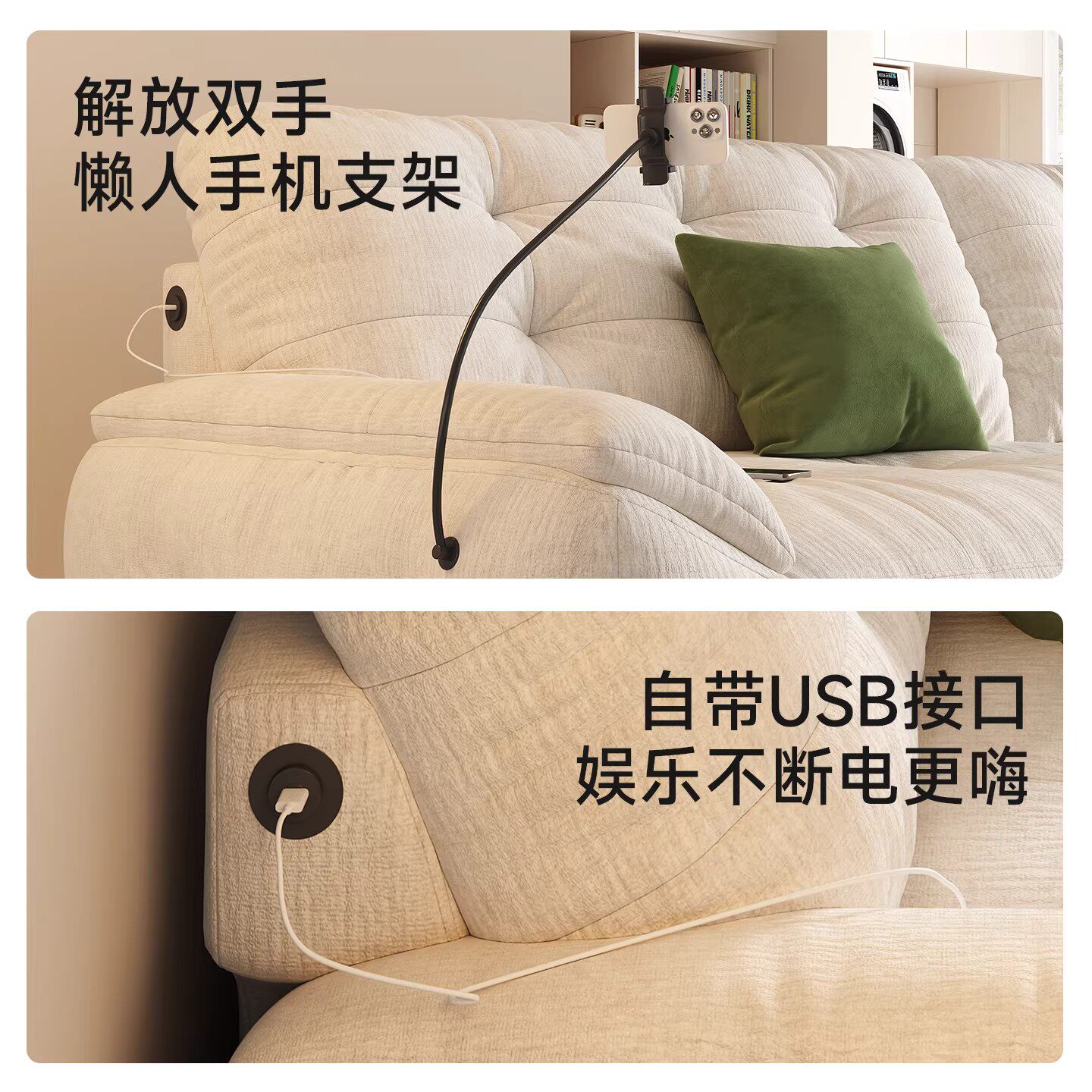 云朵沙发布艺意式 极简小户型直排客厅奶油风雪尼尔绒布太空云沙发