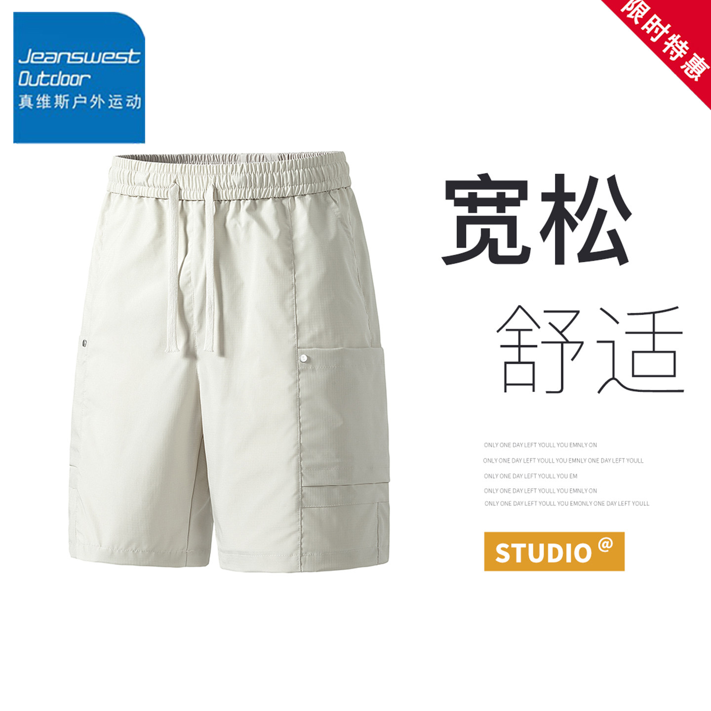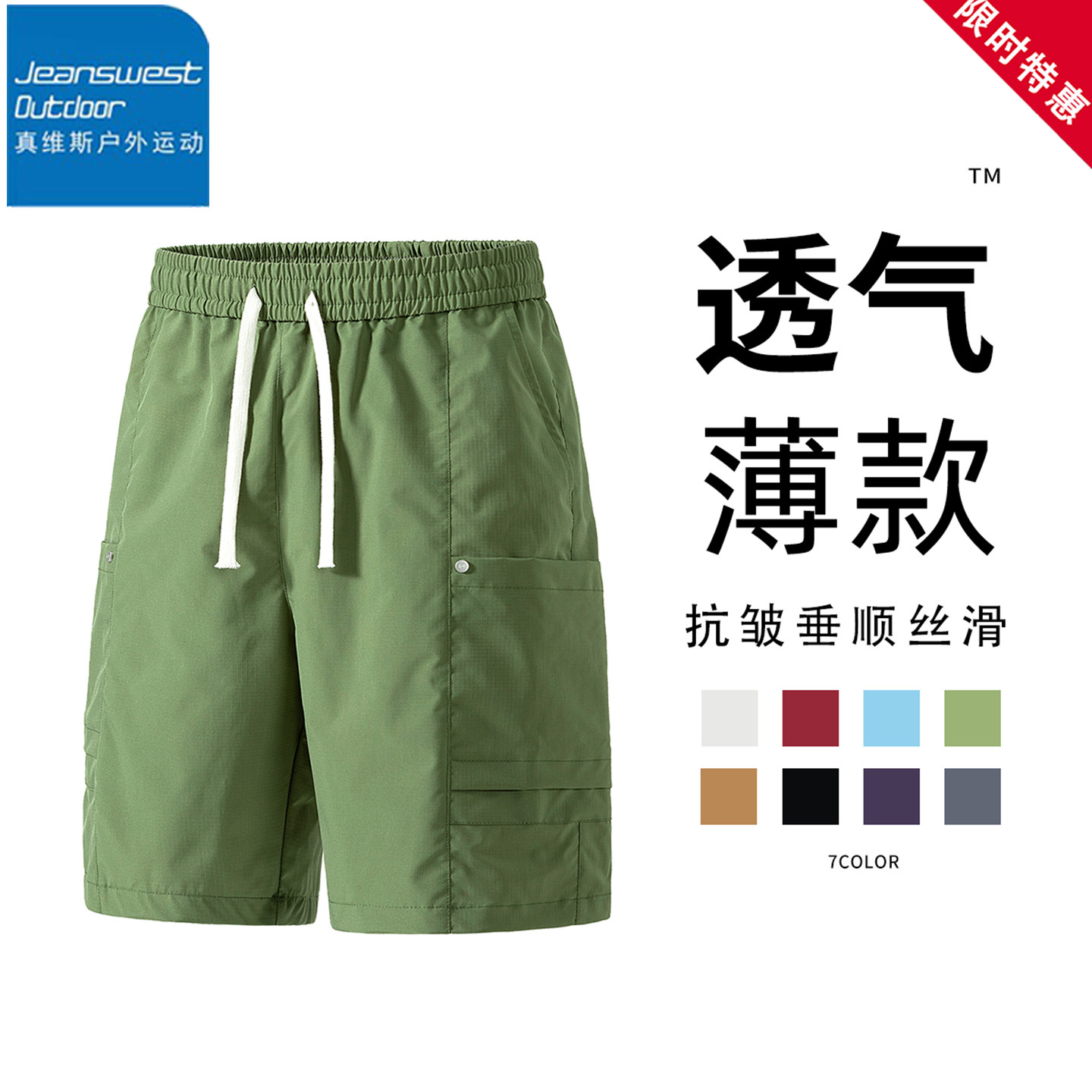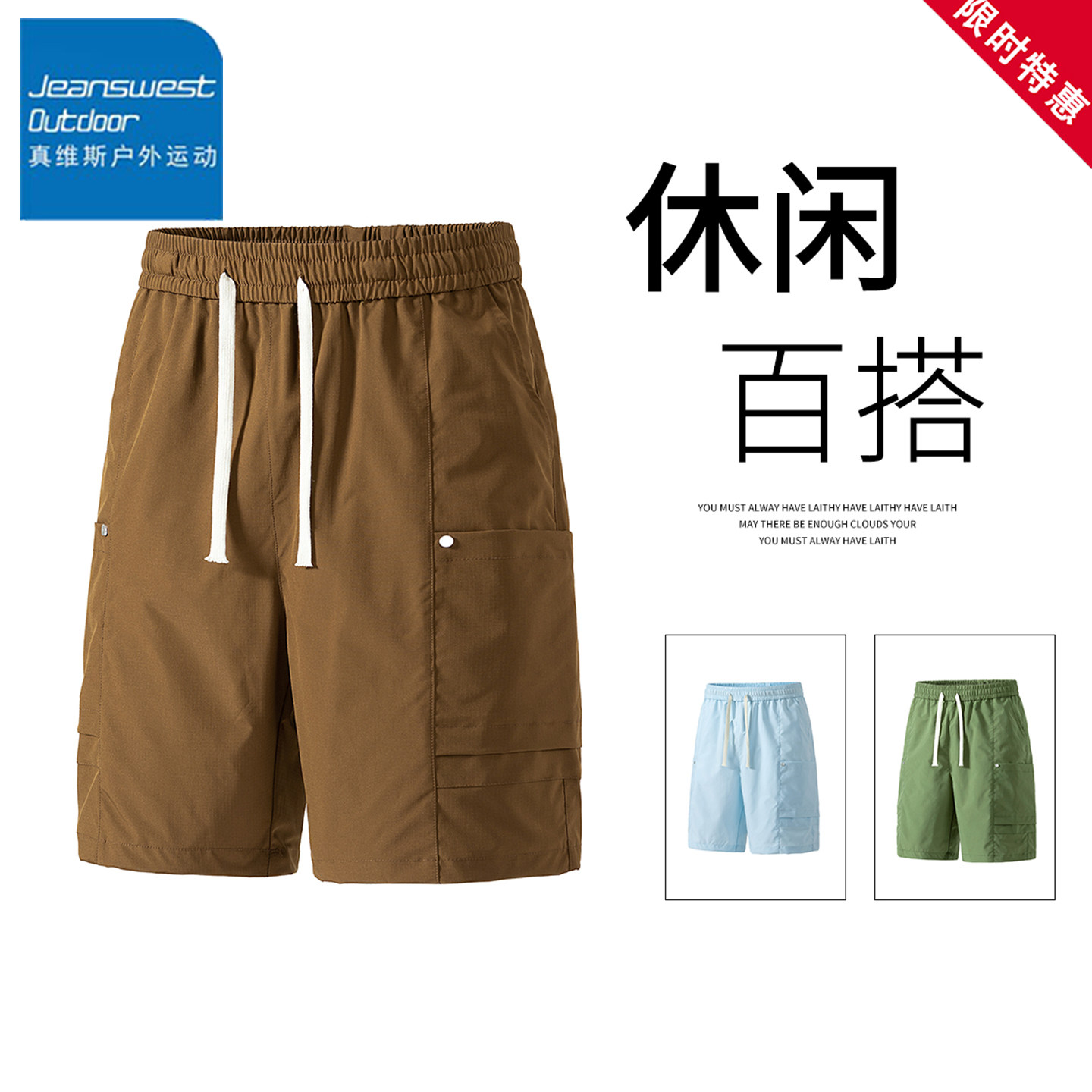 团购 透气速干宽松松紧腰休闲五分裤 真维斯户外运动短裤 男夏季