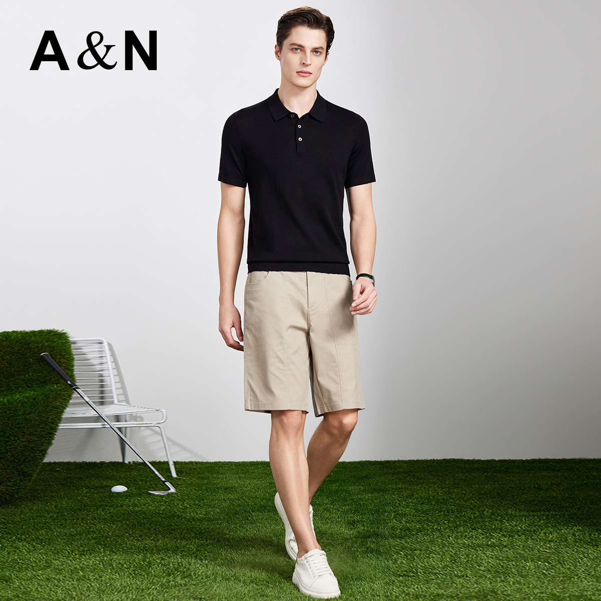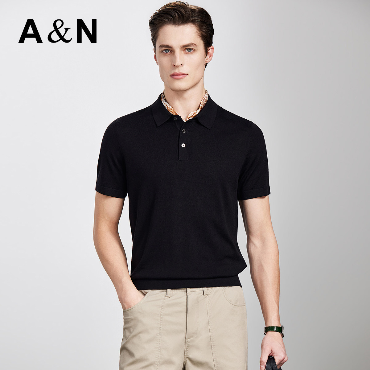 轻奢针织短袖 男士 AntonNeal可机洗精纺羊毛衫 t恤 黄金羊毛100%