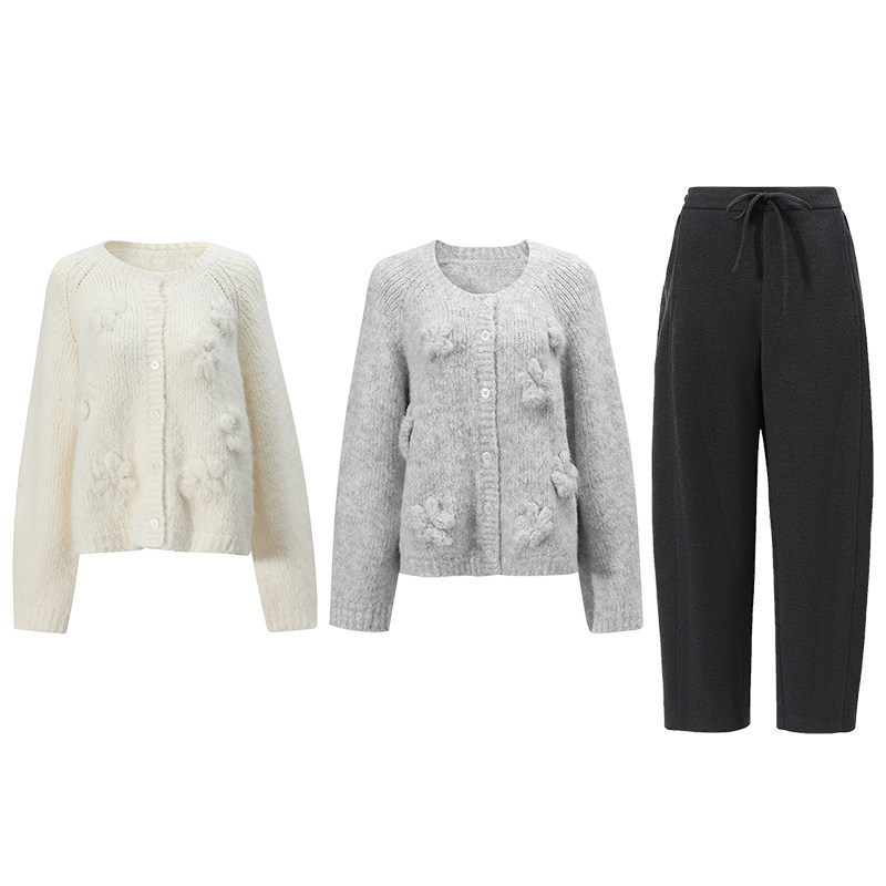 所有女生 灰绣花毛衣 衣橱直播间 RESTRAIN白 针织休闲裤 NON