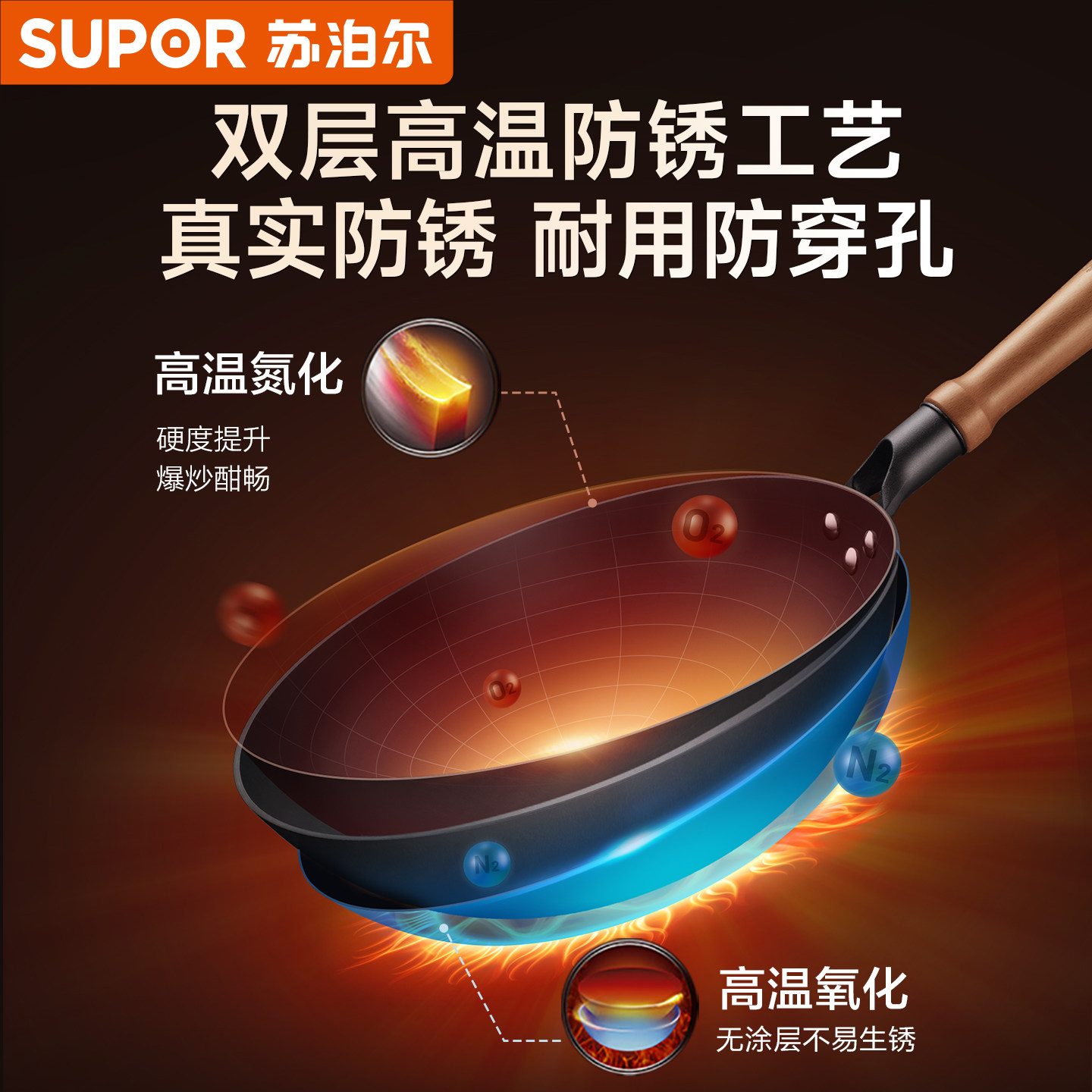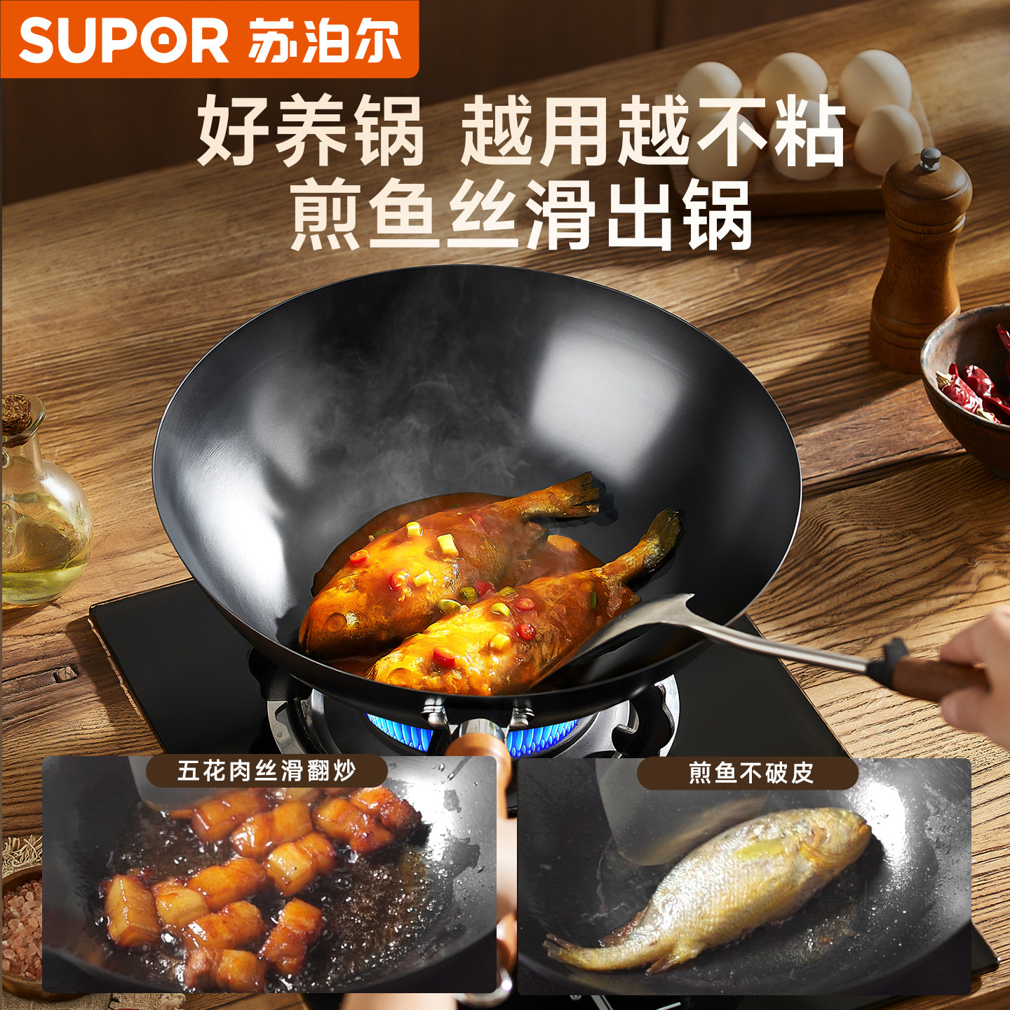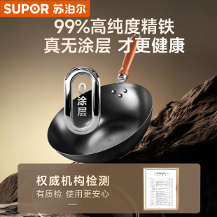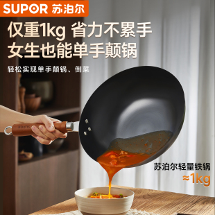 苏泊尔铁锅家用炒菜锅老式 无涂层平底炒锅燃气灶电磁炉专用免开锅