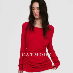 型长袖 2026 女莱赛尔亚麻设计感小众修身 松弛风挂脖打底小衫