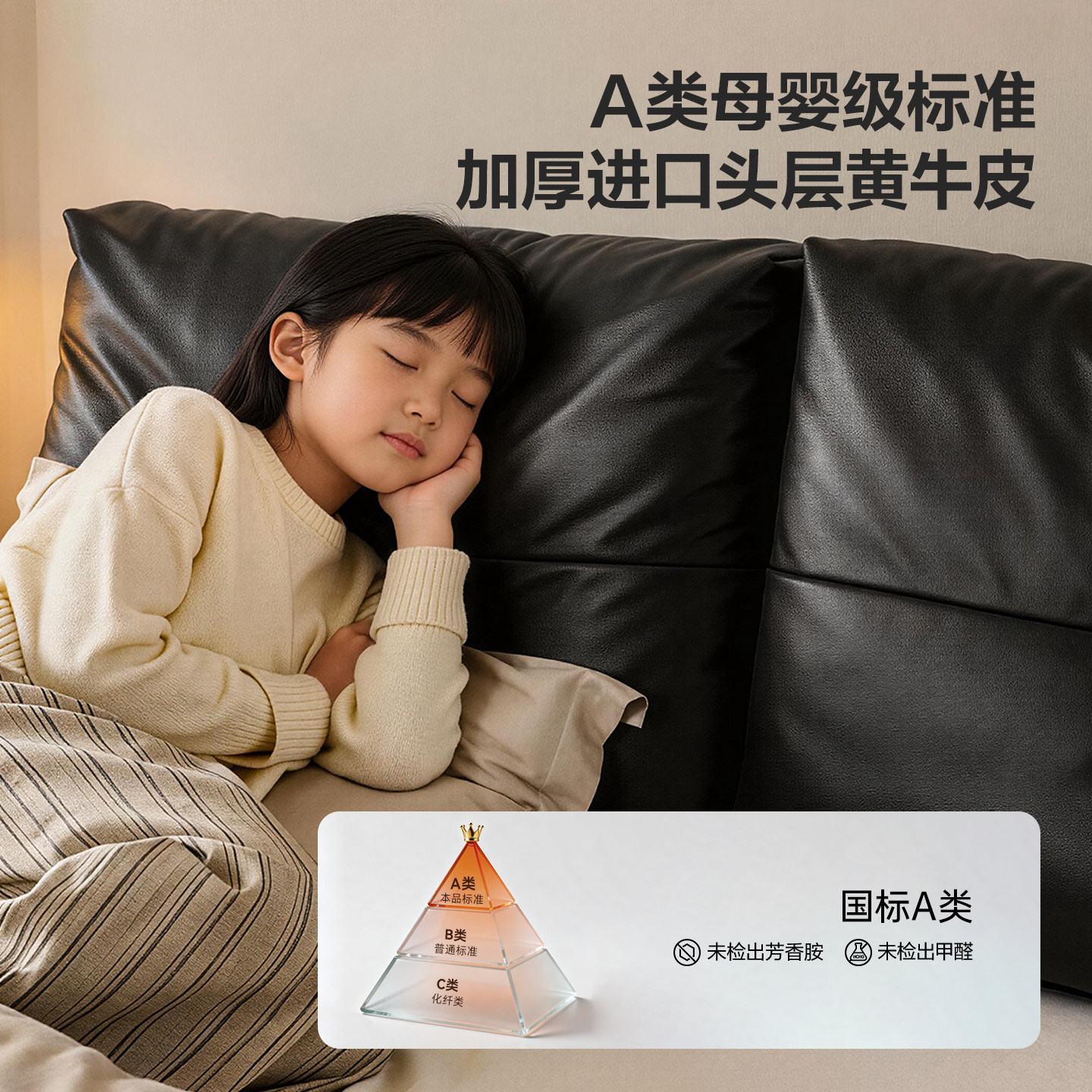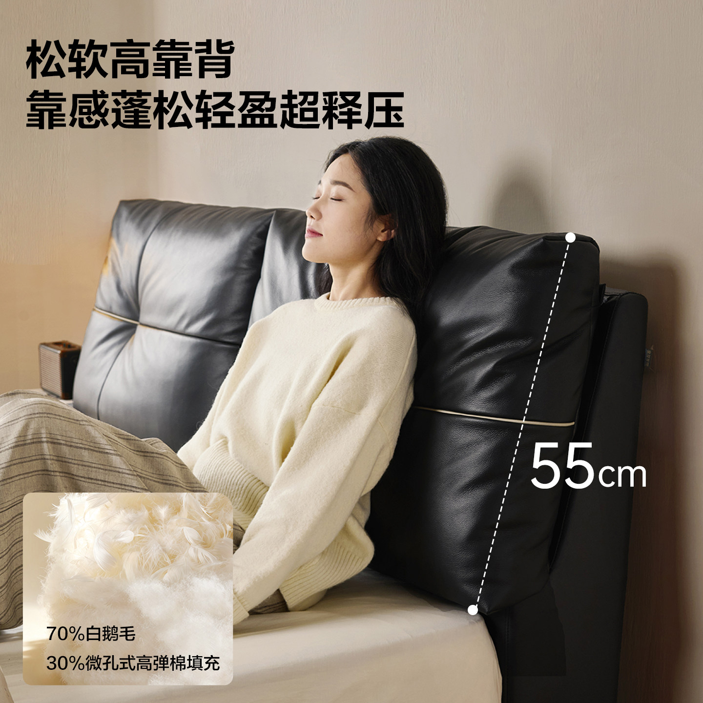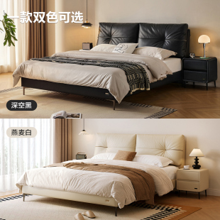 全友家居意式 极简真皮床1米8双人床主卧室简约软包黑色床2026新款
