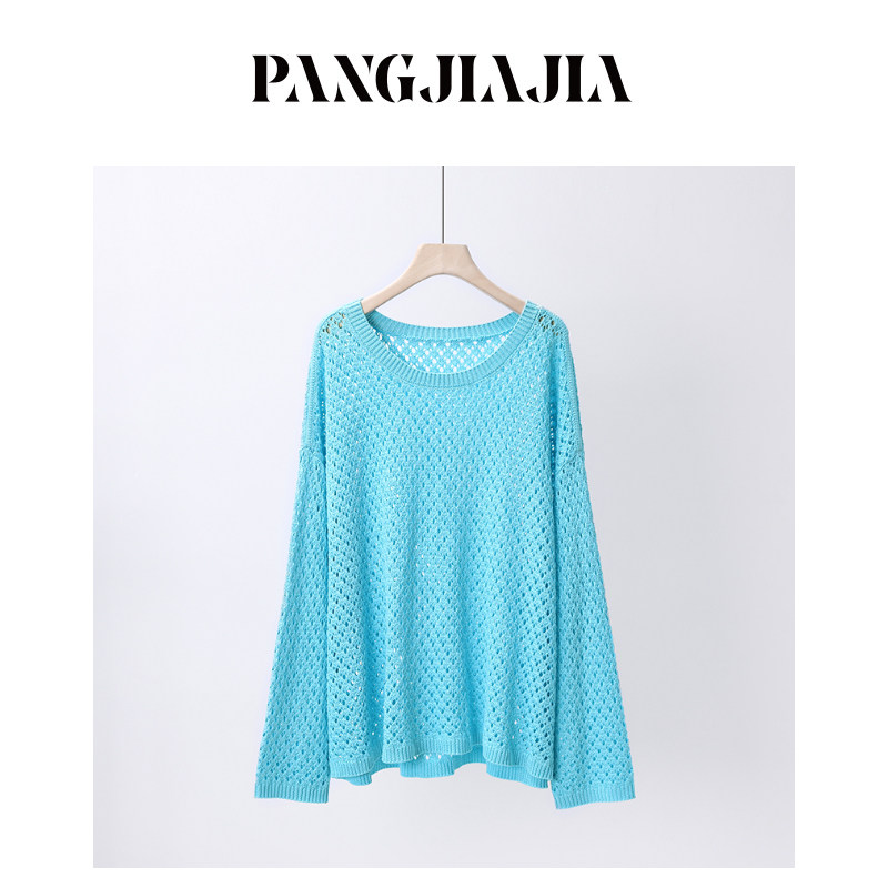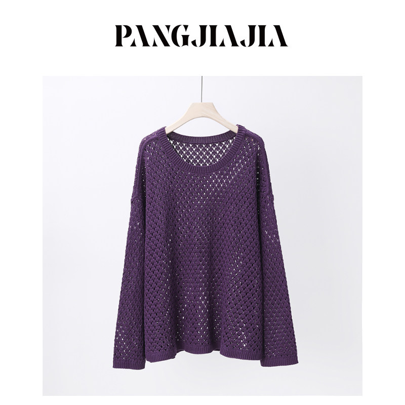 女装 胖妹妹mm大码 松弛时髦针织衫 春季 镂空钩花毛衣 时尚 胖佳佳