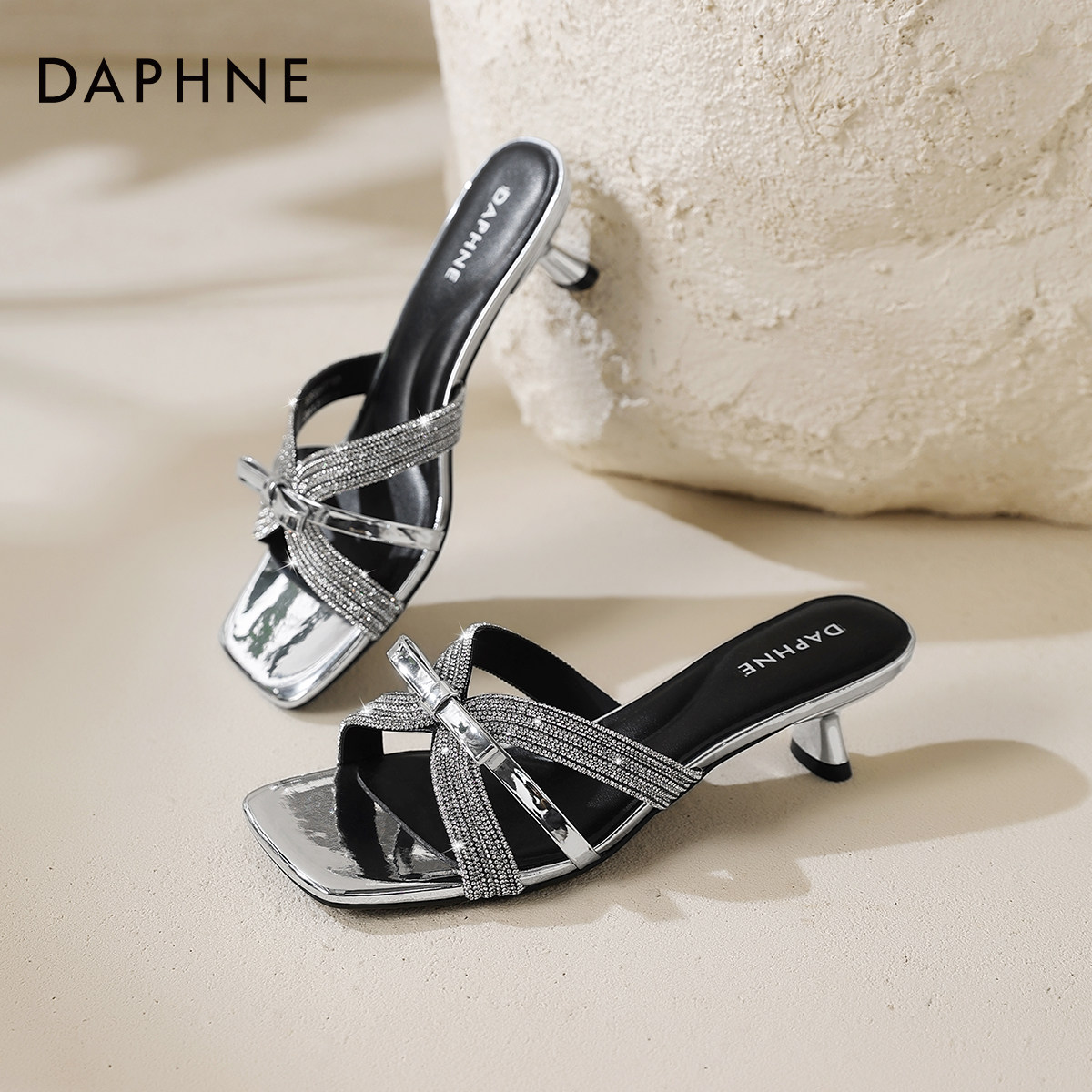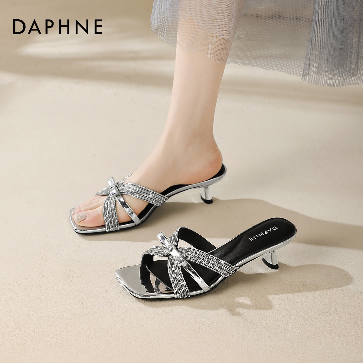 女外穿一脚蹬夏凉女鞋 达芙妮银色高跟凉拖鞋 半拖鞋 夏季 女2026新款