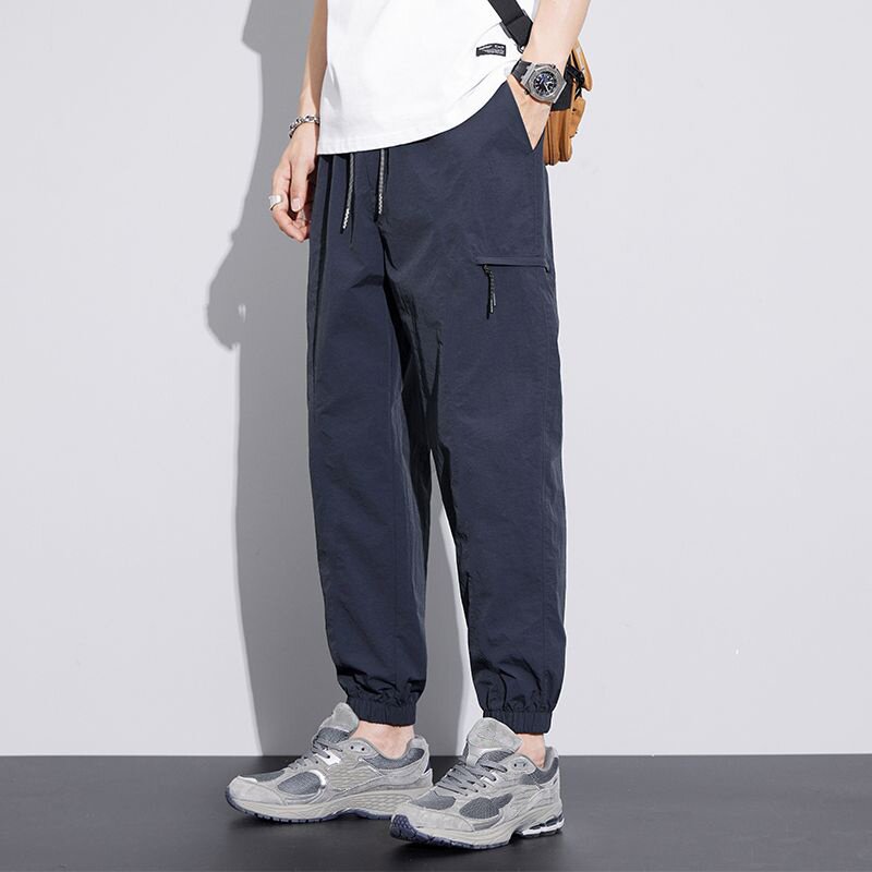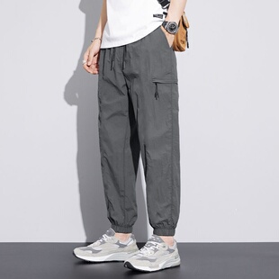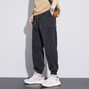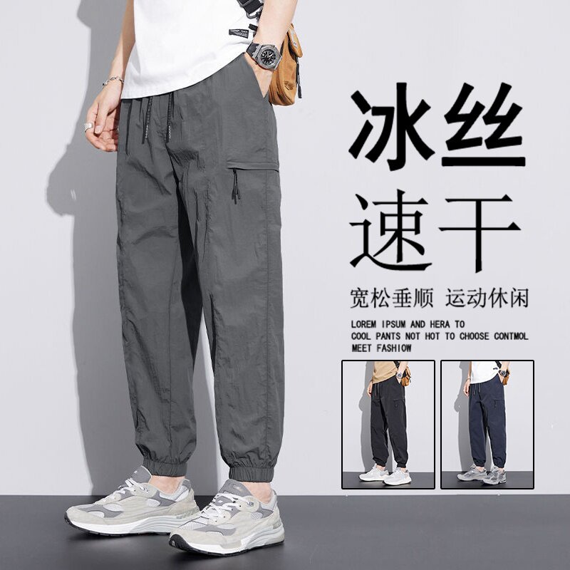 子男宽松束脚长裤 冰丝裤 运动速干九分工装 潮牌男装 夏季 休闲裤 薄款
