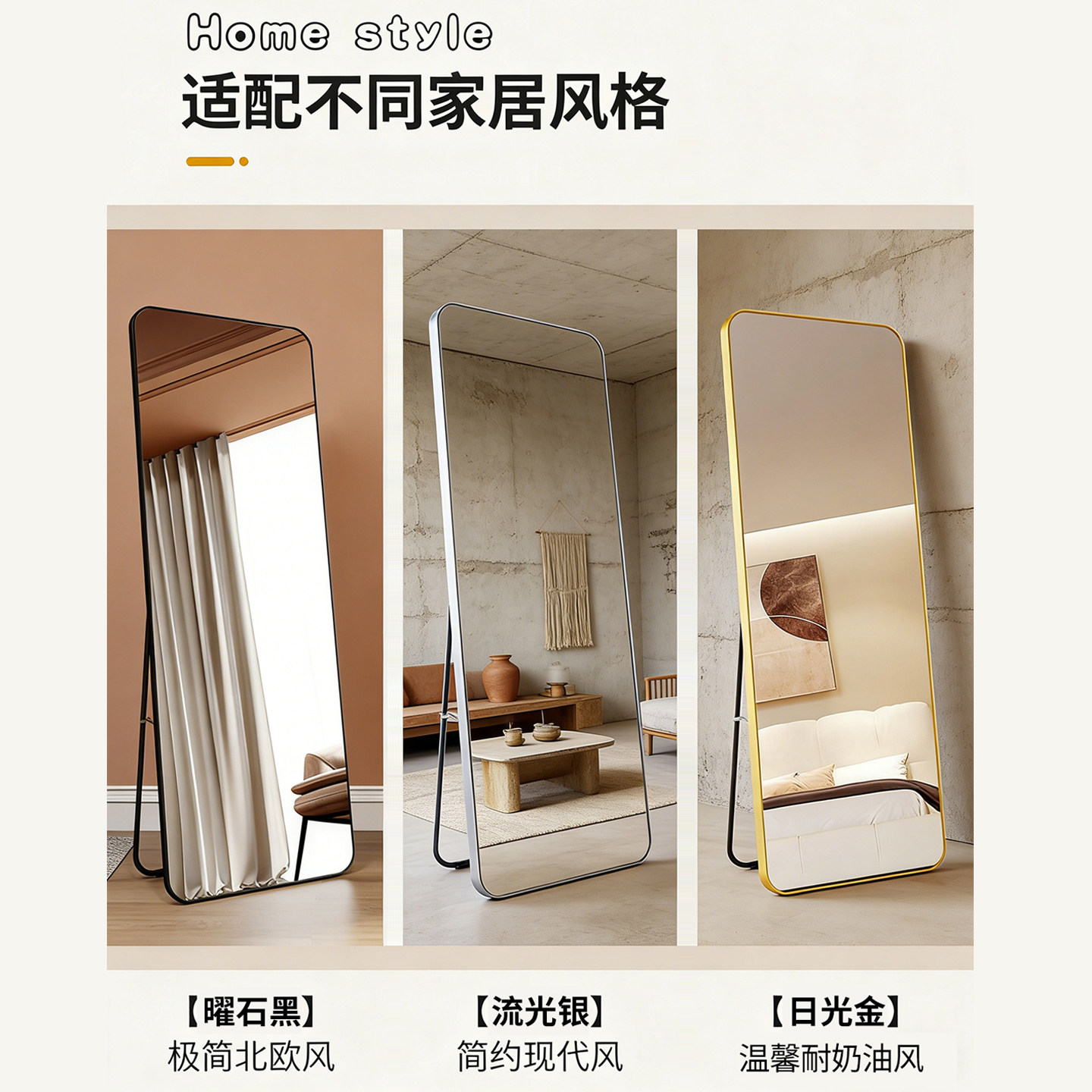全身镜落地镜家用镜子挂墙高级网红简约试衣镜女生卧室宿舍穿衣镜