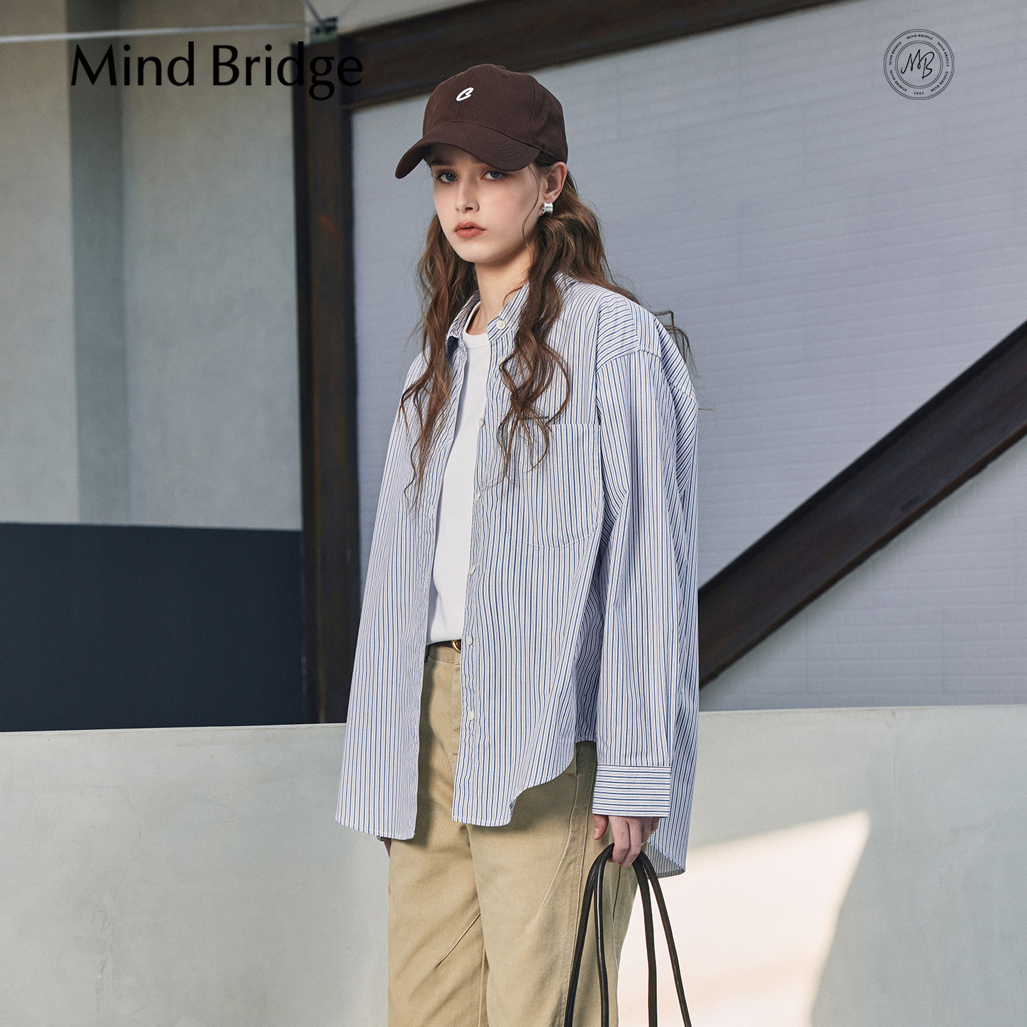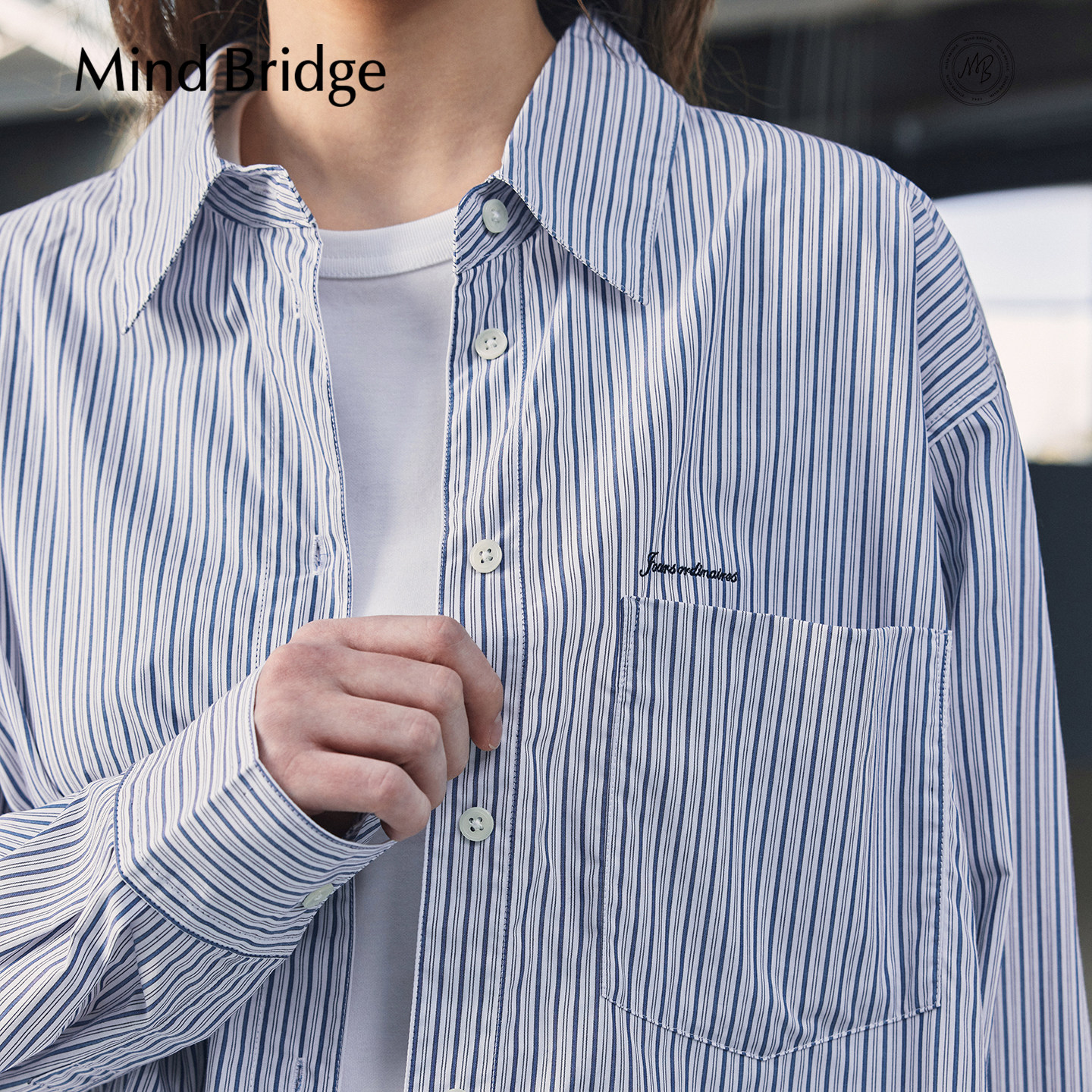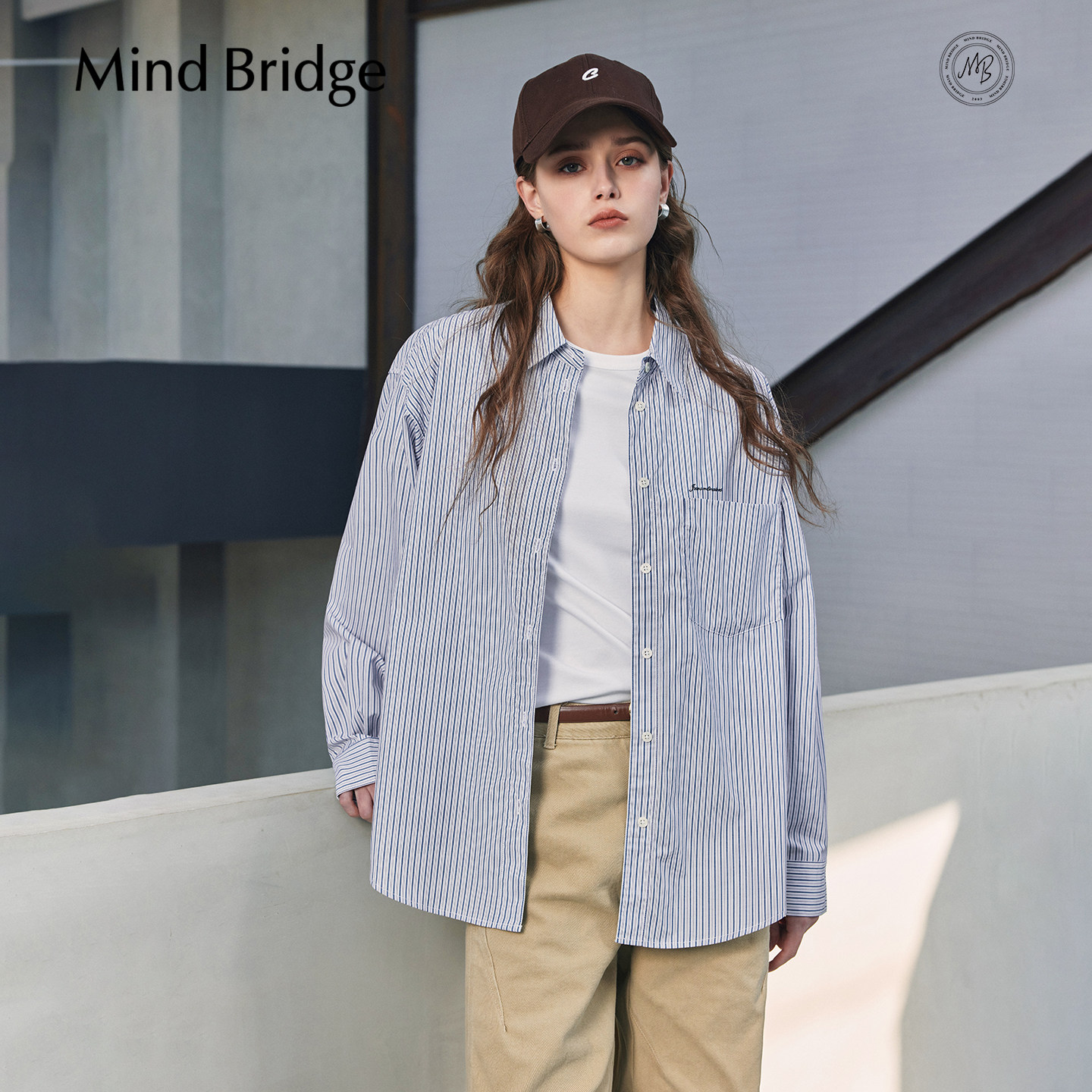衬衫 MindBridge 条纹长袖 女士宽松休闲百搭衬衣2026年春季 纯棉